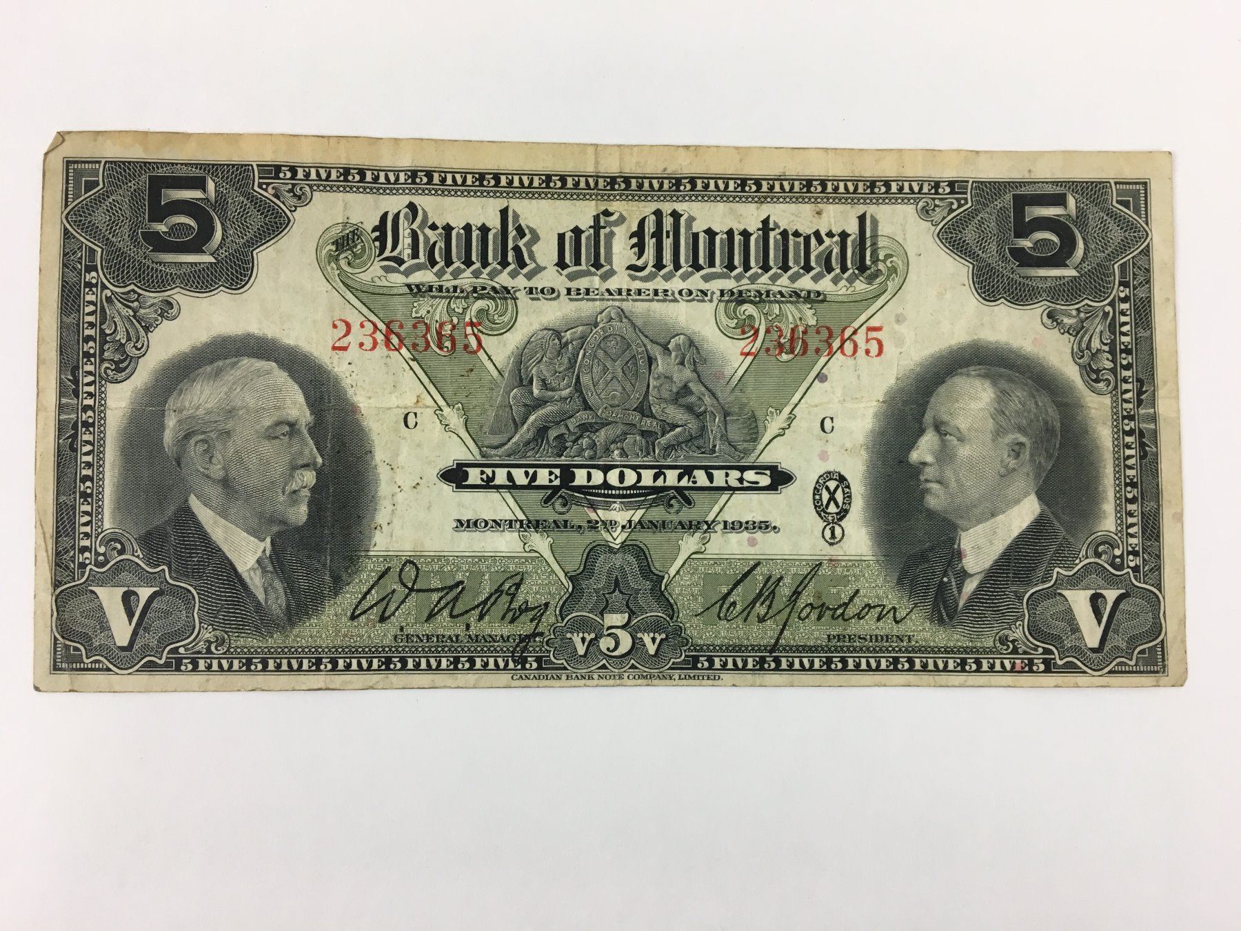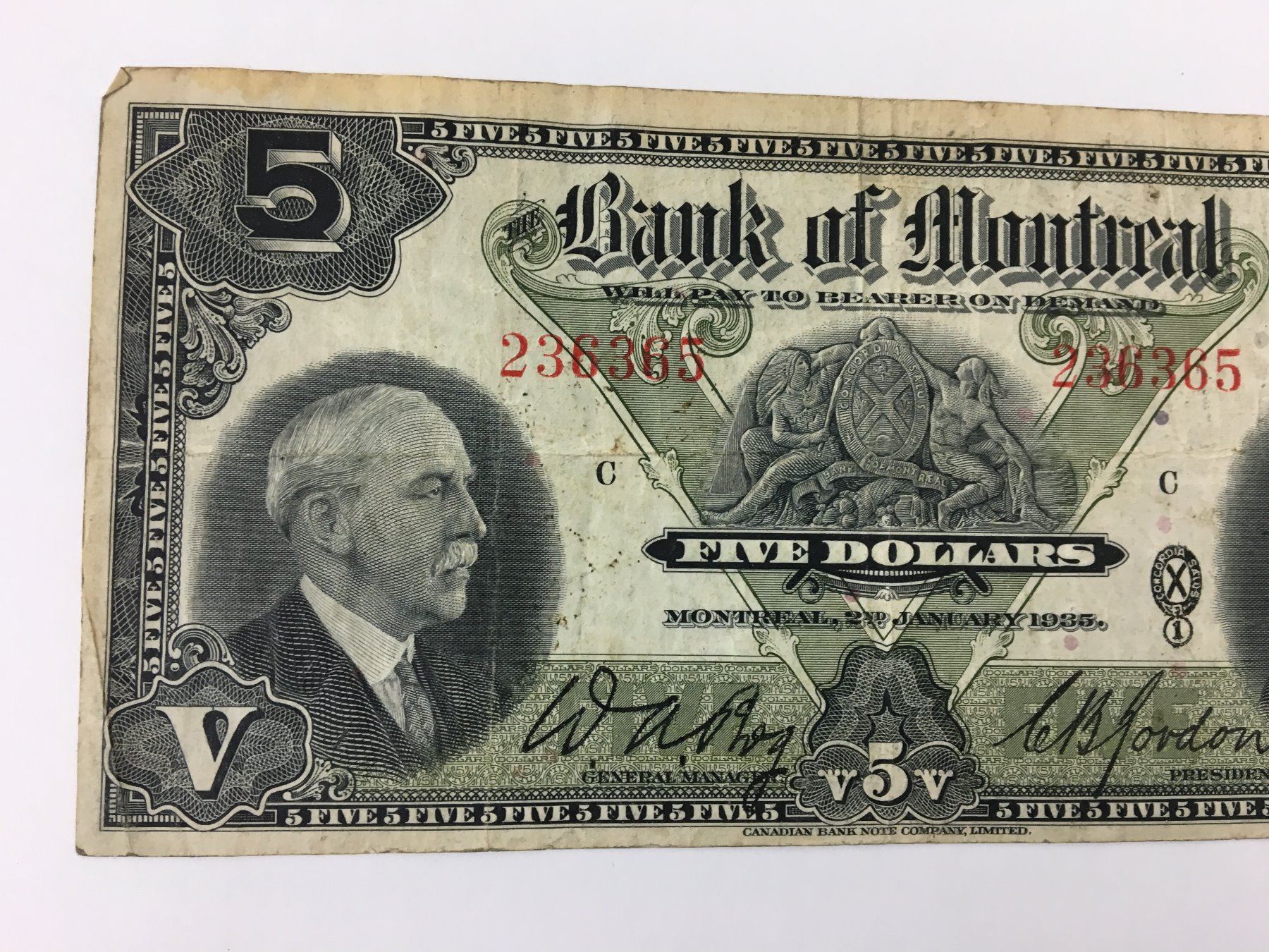 $5 BANK NOTE (BANK OF MONTREAL) *1935*
