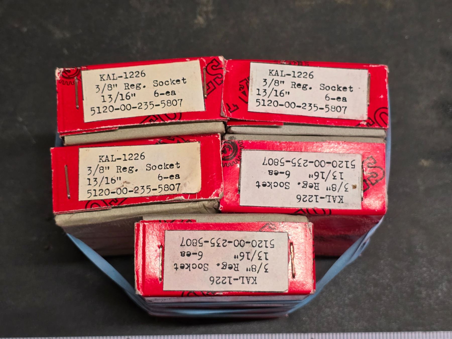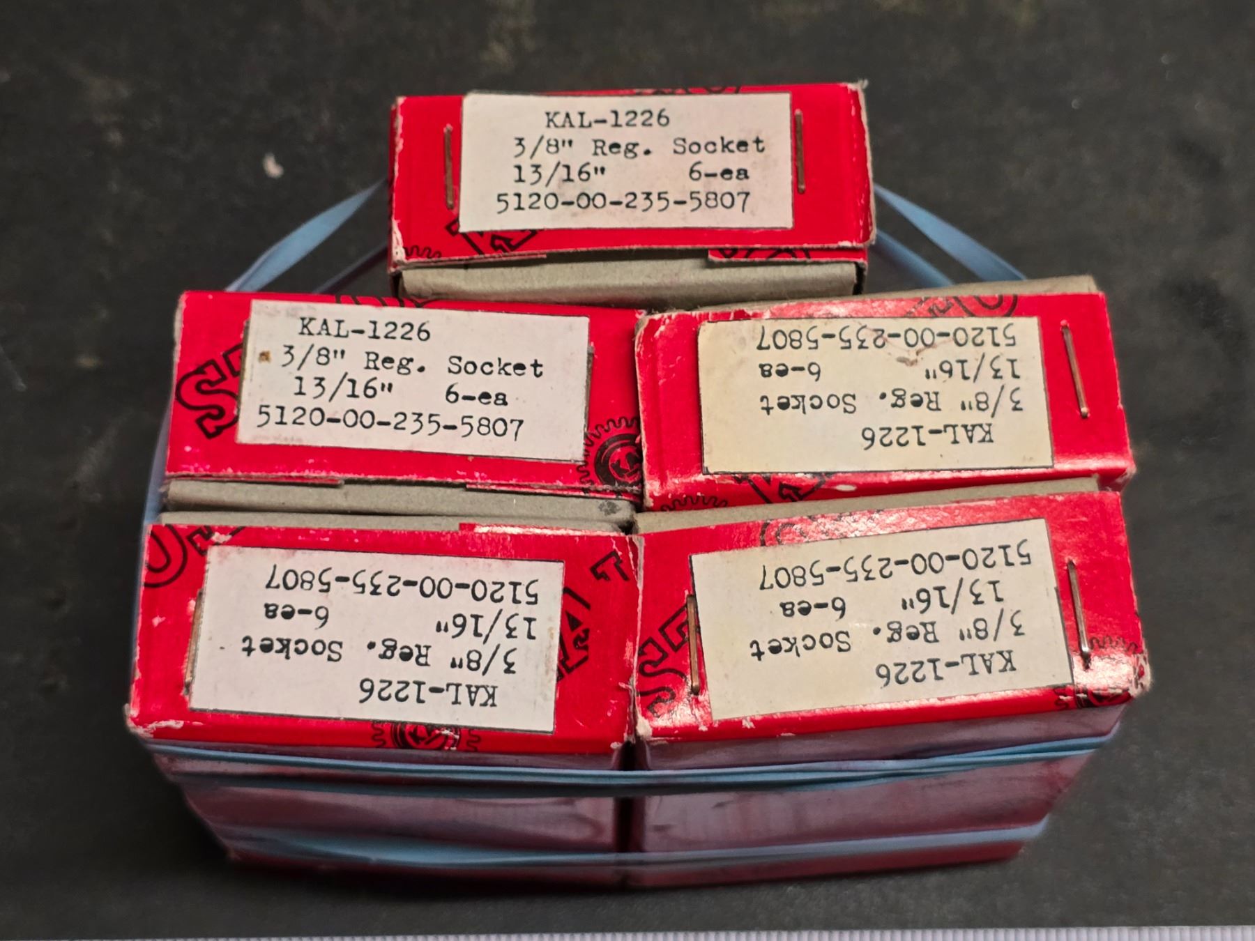 5 Boxes of 13/16, 3/8" sockets - new