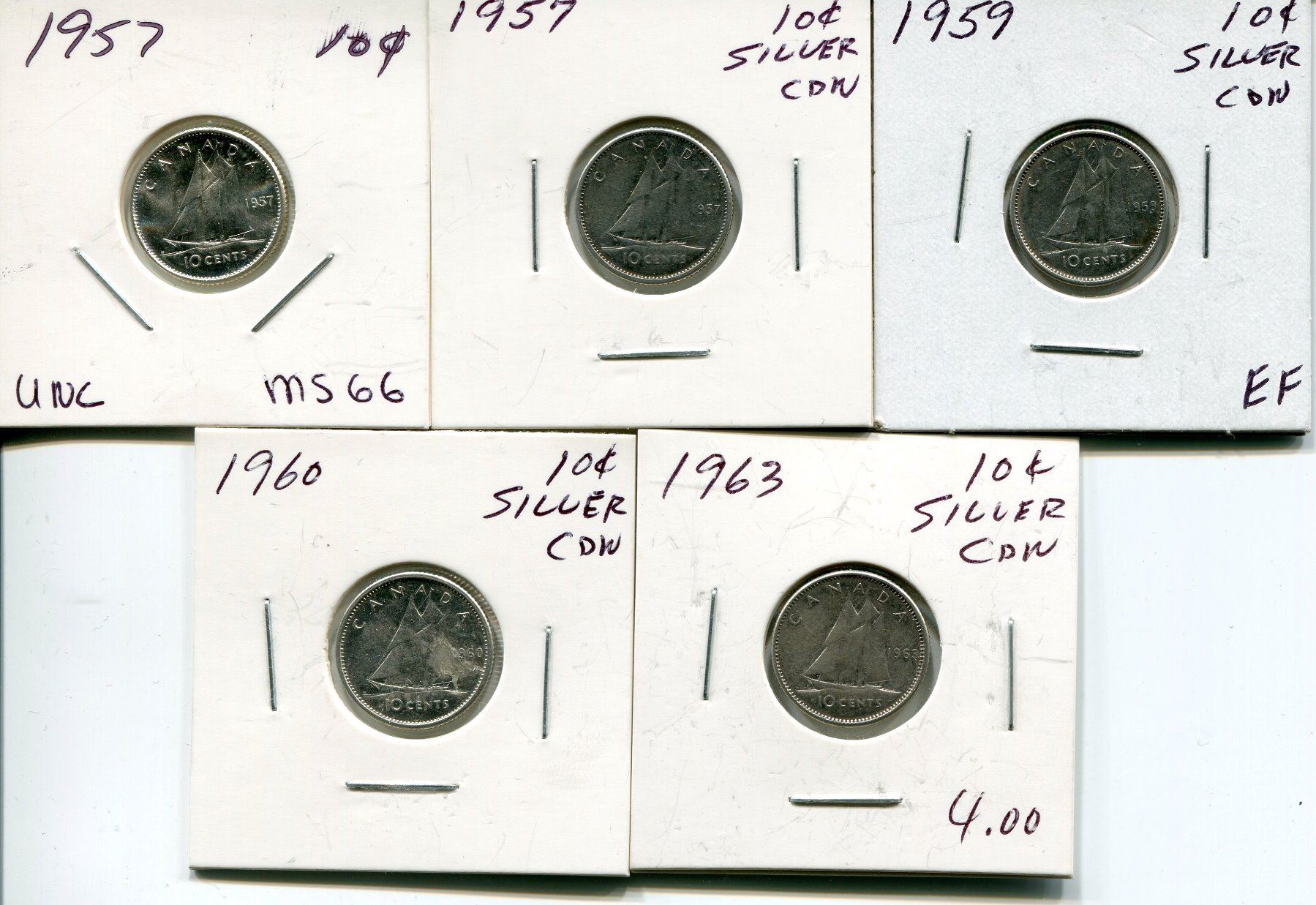 5 CNDN SILVER DIME 1957, 57, 59, 60, 63