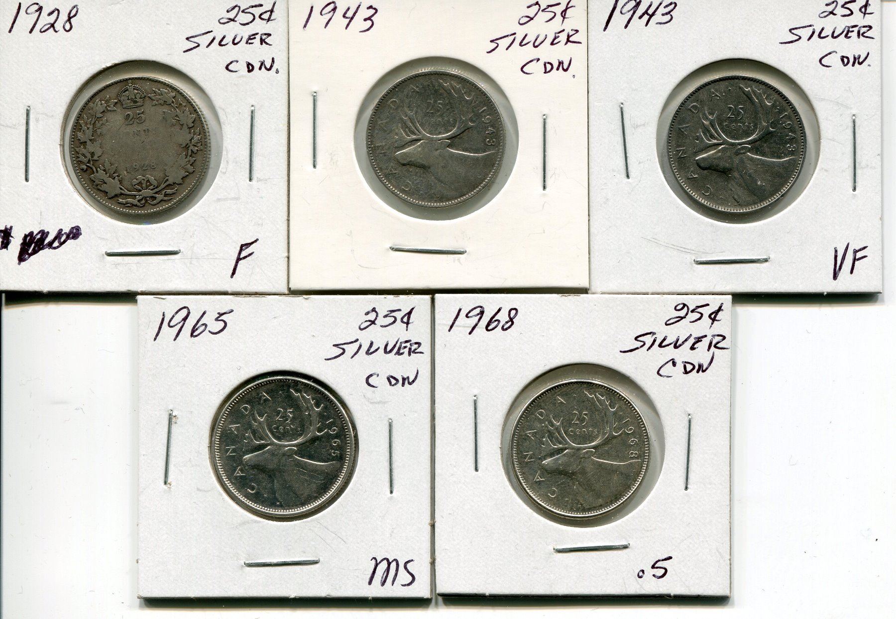 5 CNDN SILVER QUARTERS 1928, 2 - 43, 65, 68