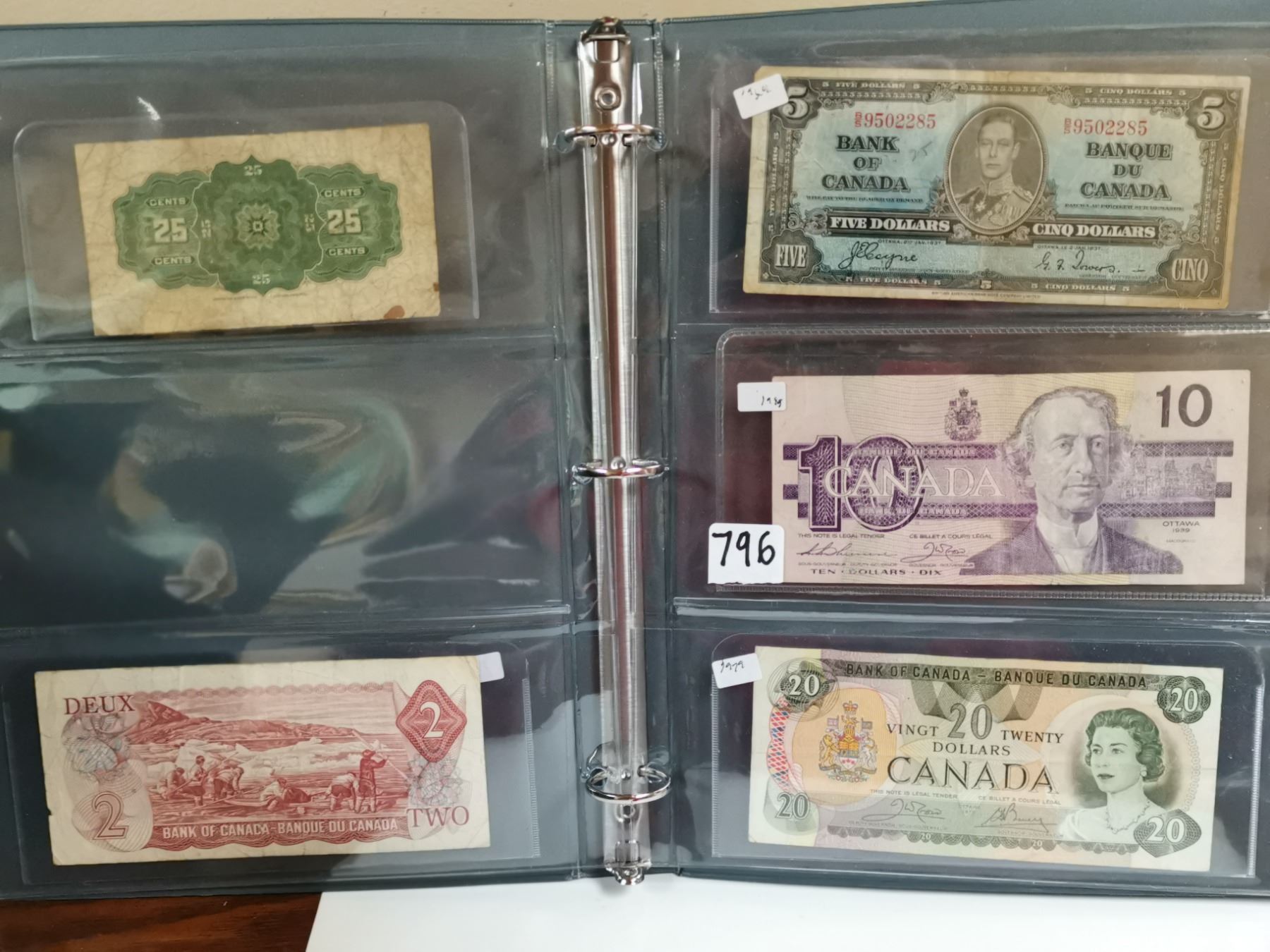 5 Canada mixed bills 25¢ ,$2 ,$5,$10 ,$20