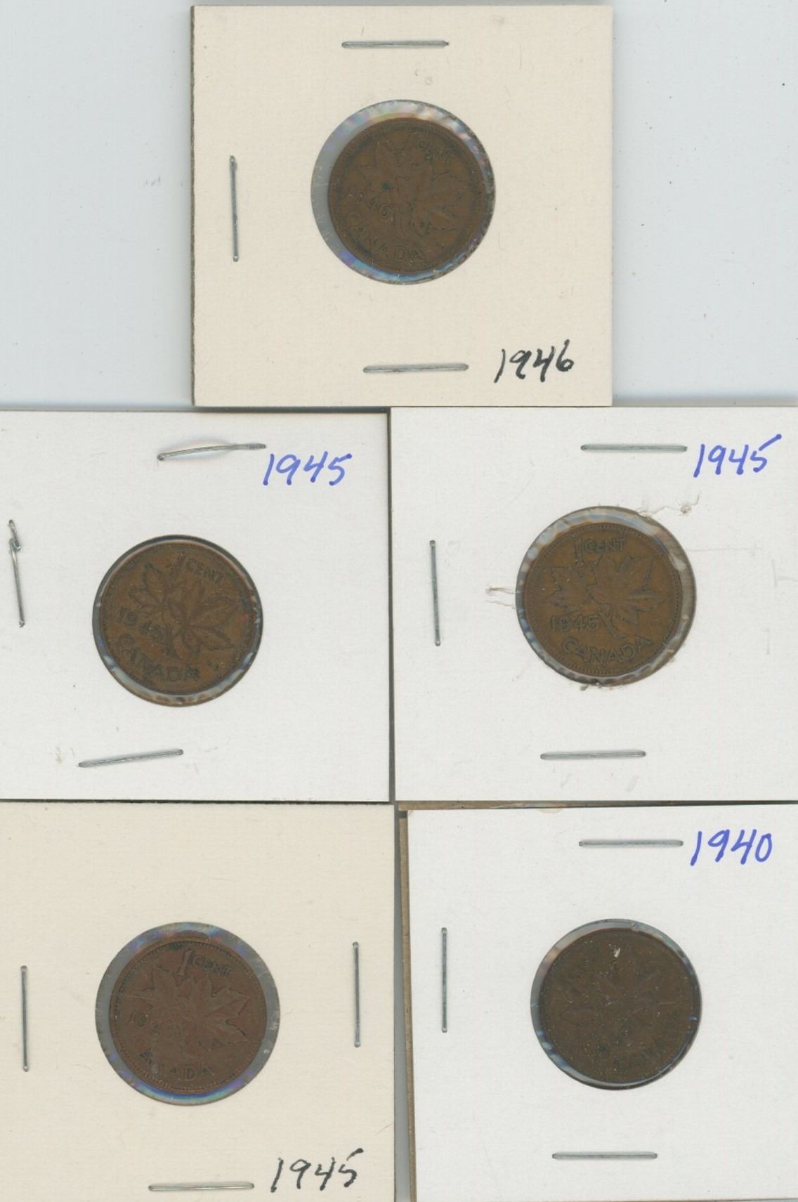 (5) Canadian Pennies 1940-1946