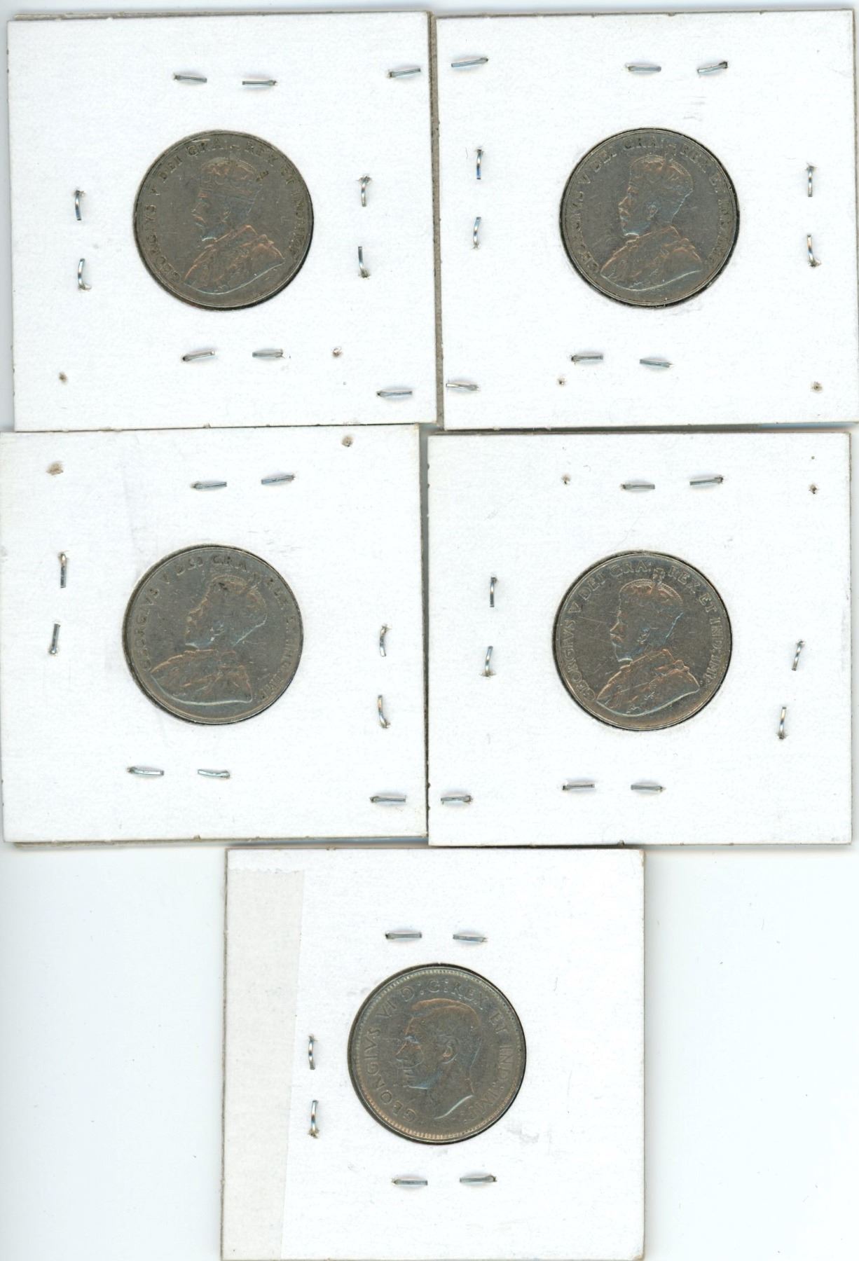 5 Cdn 5¢ coins - (2) 1934/35 (2) 1936 (1) 1939