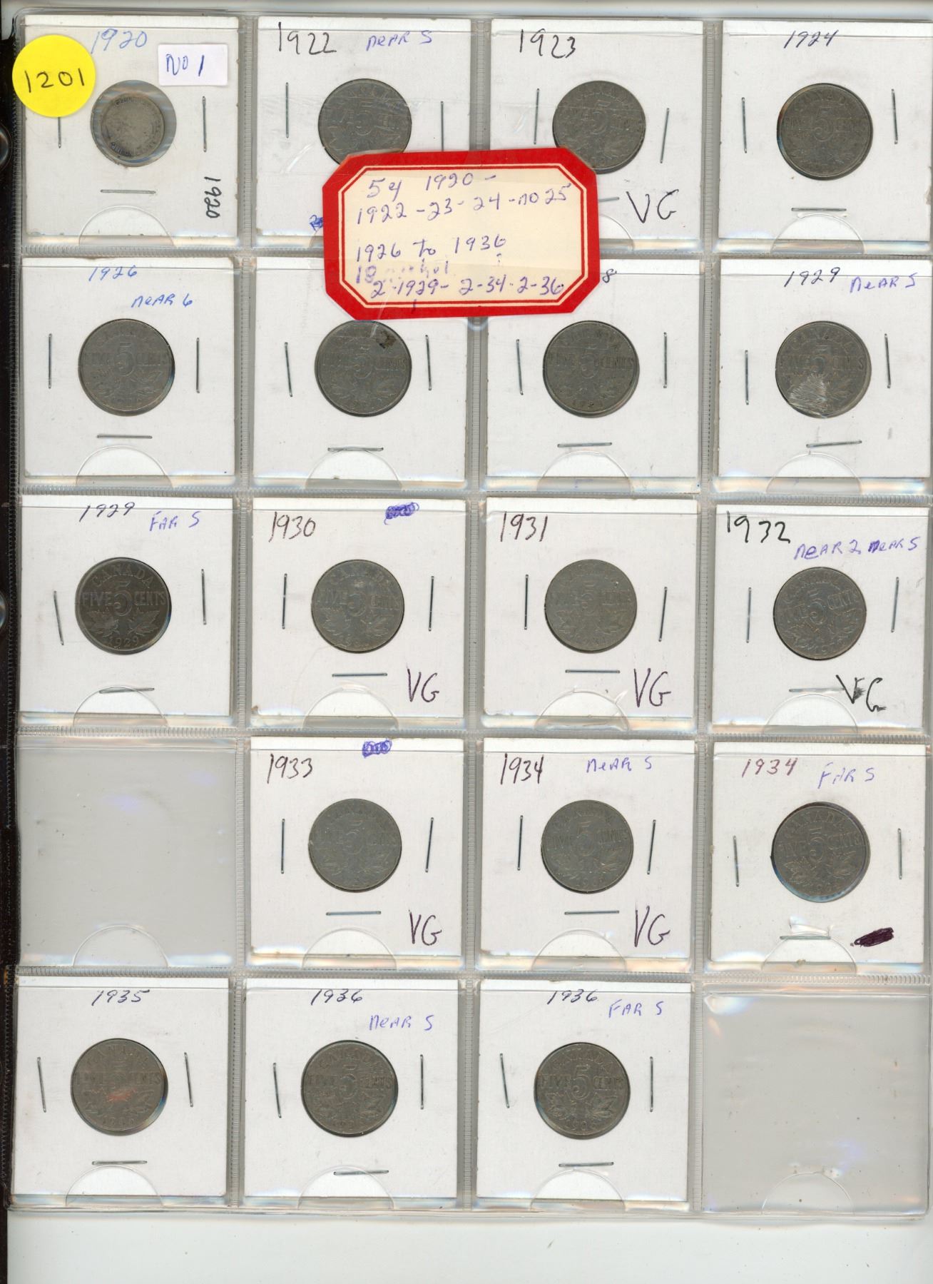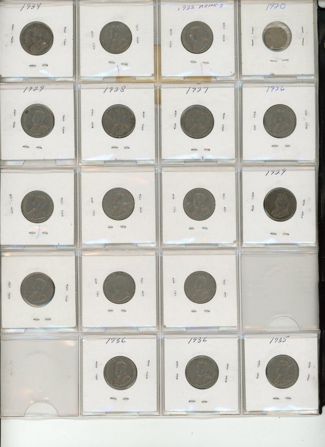 5 Cent 1920-1922-1923-1924-1926 to 1936 (18 Nickles)