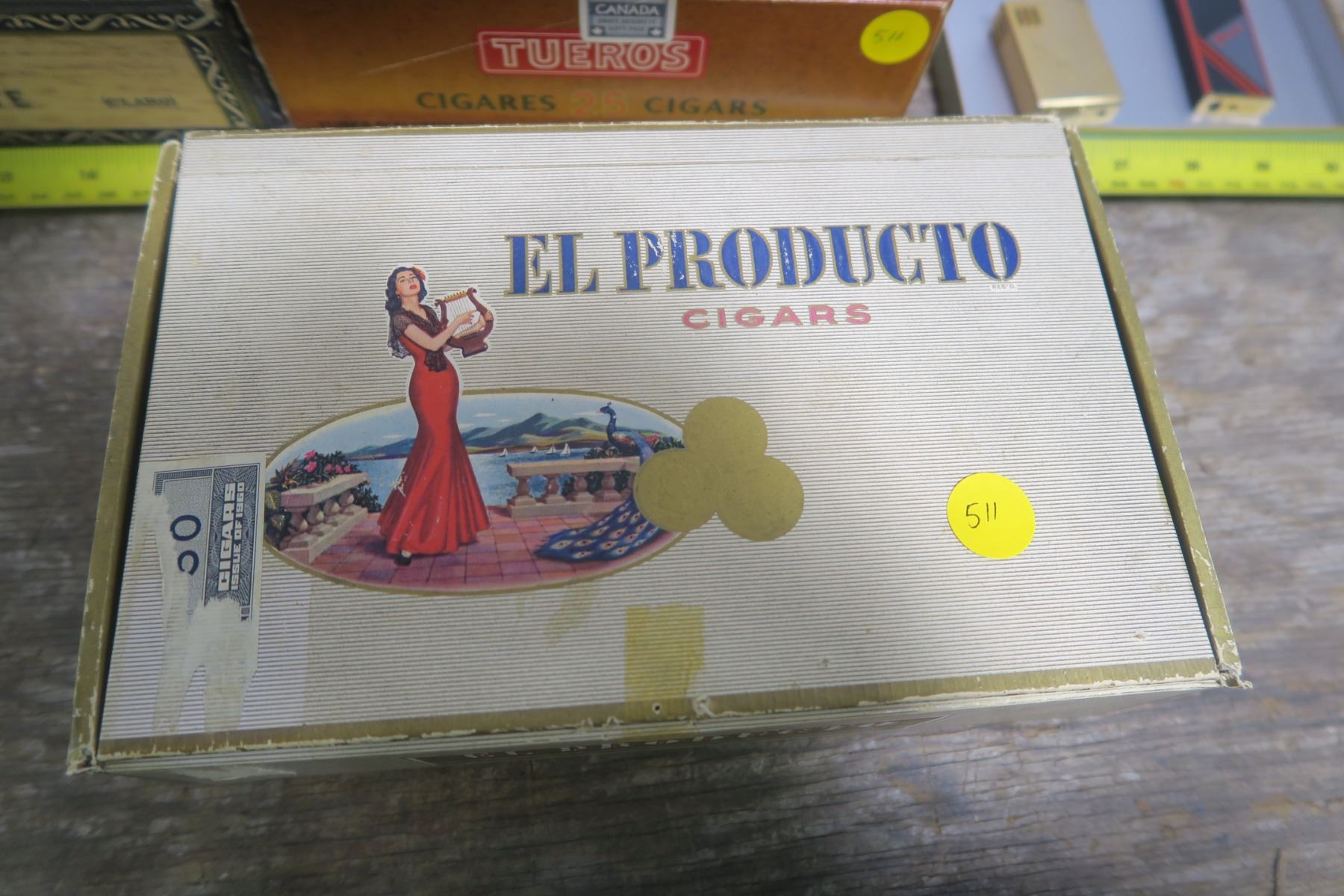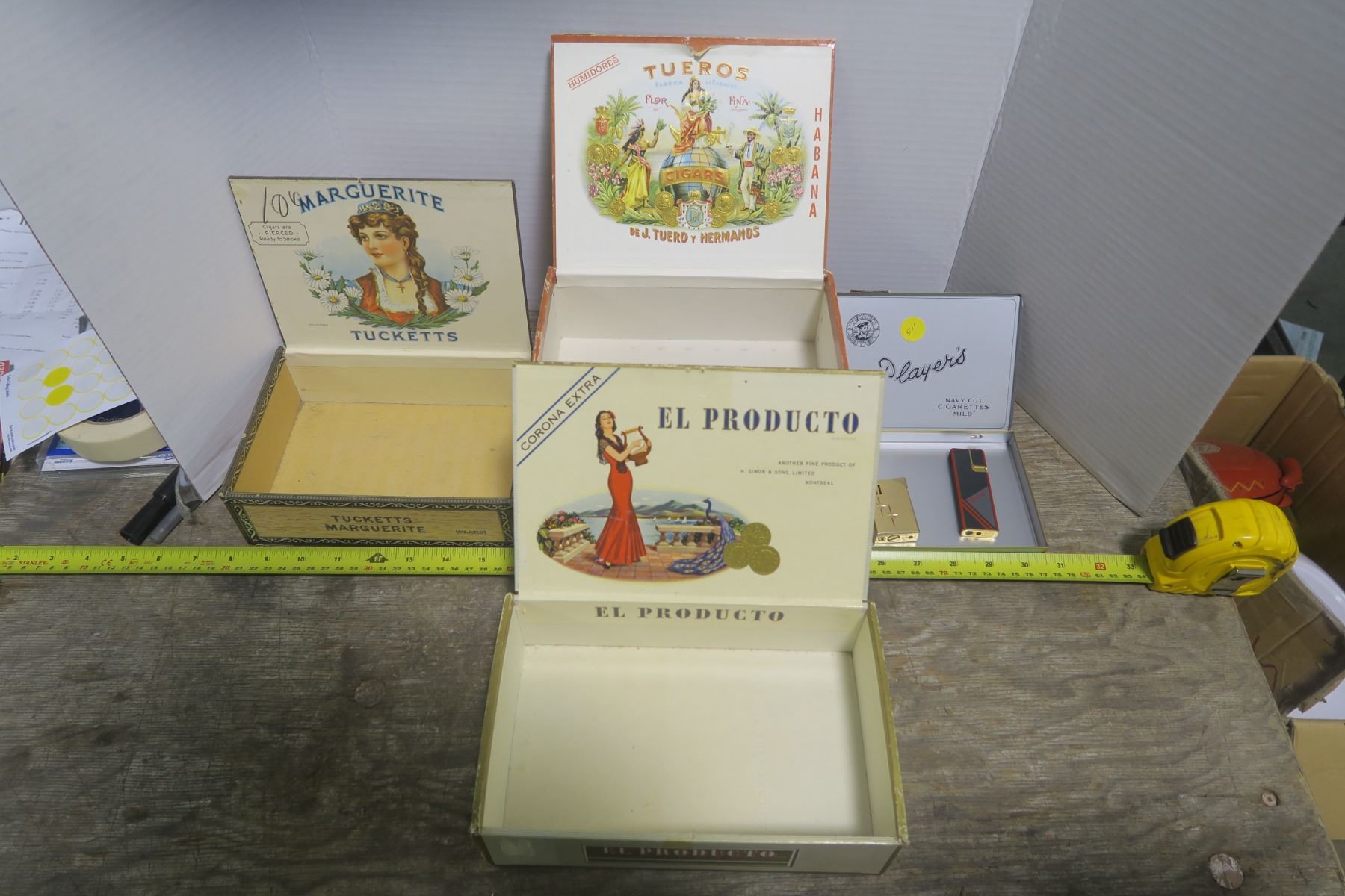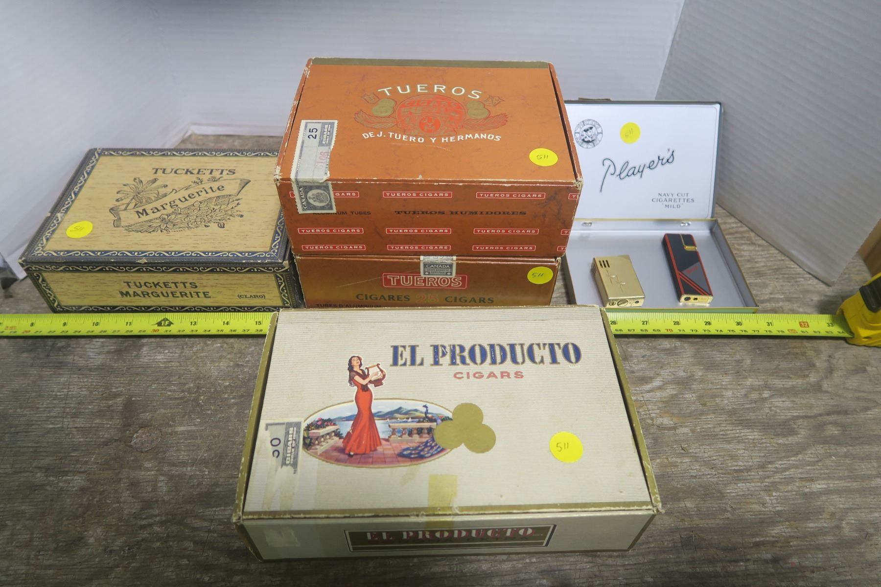 5 Cigar Boxes and 2 Lighters