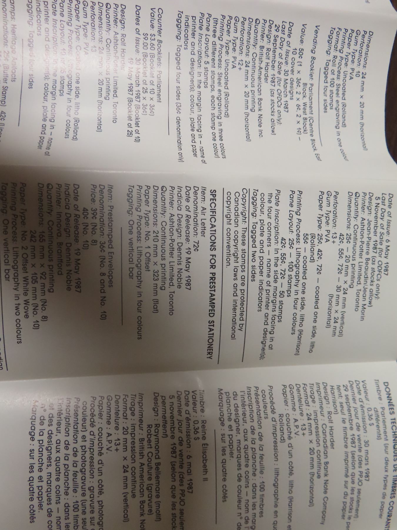 5 Different 1987-issued Stamps
