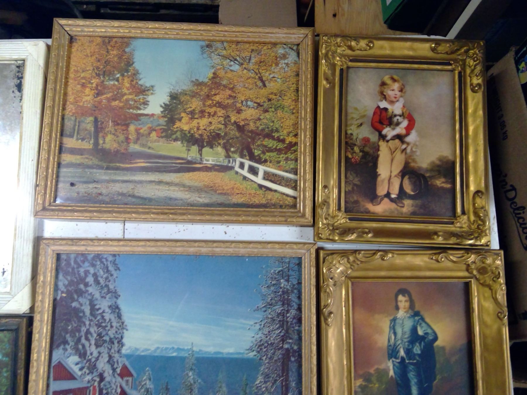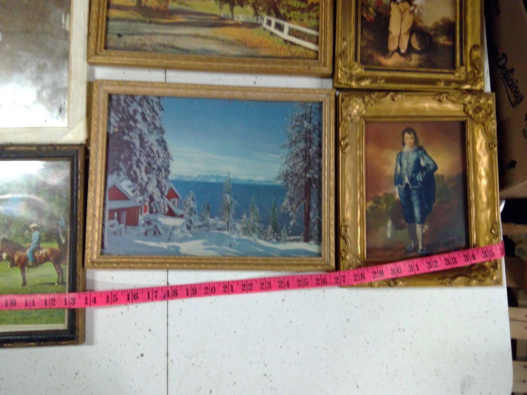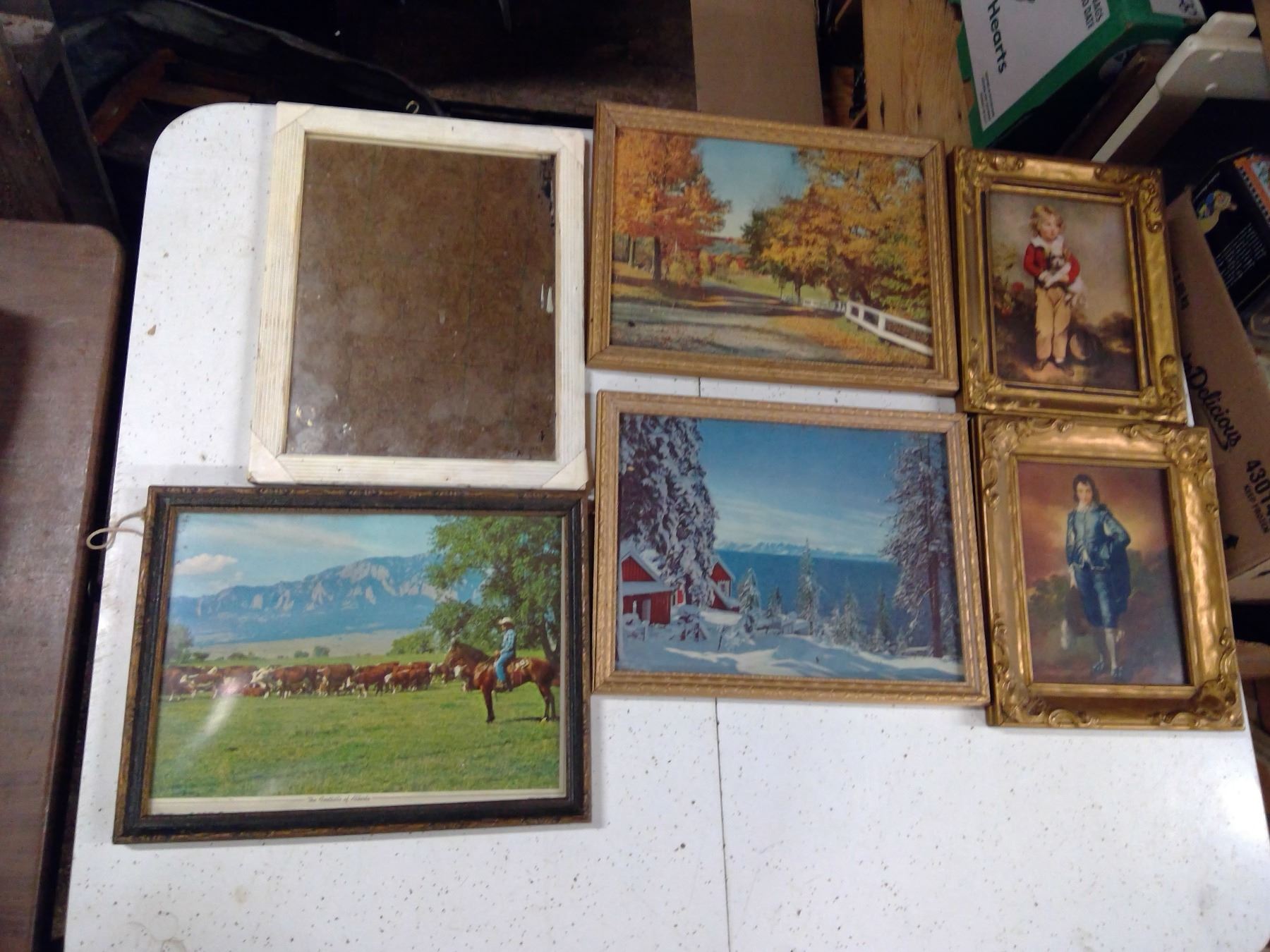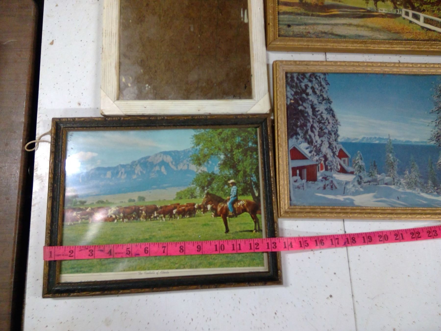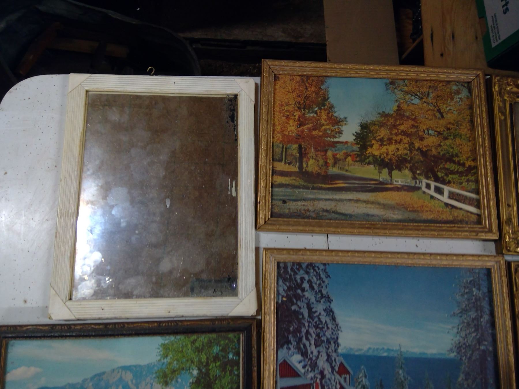 5 FRAMED PHOTOS AND ONE FRAMED MIRROR