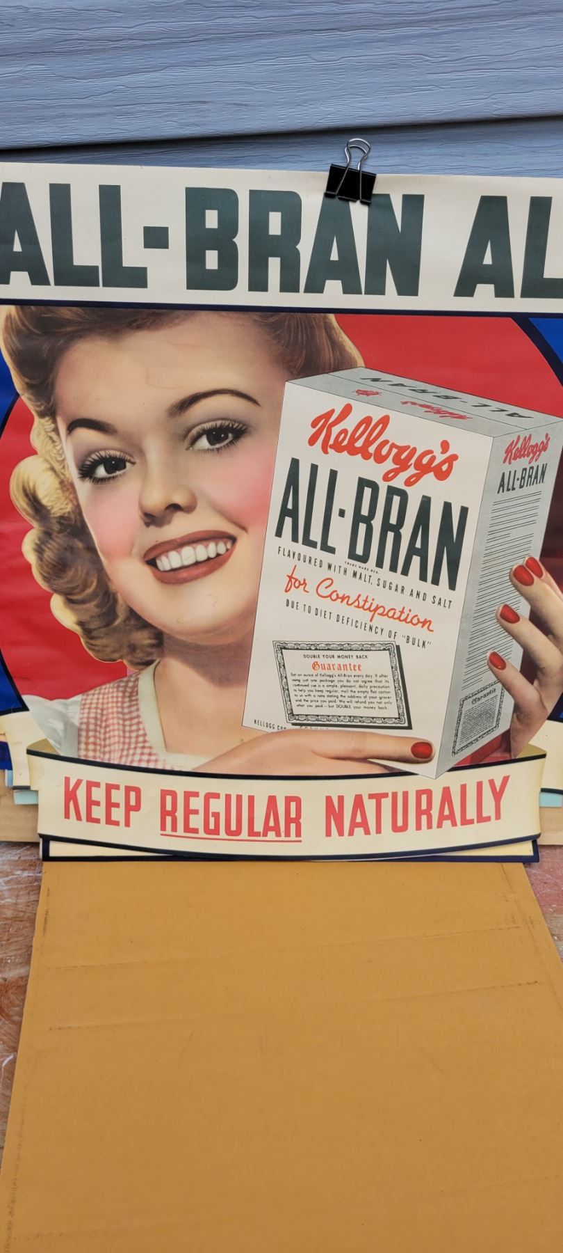 5 Foot Kellogg's All Bran advertising banner - double sided, excellent