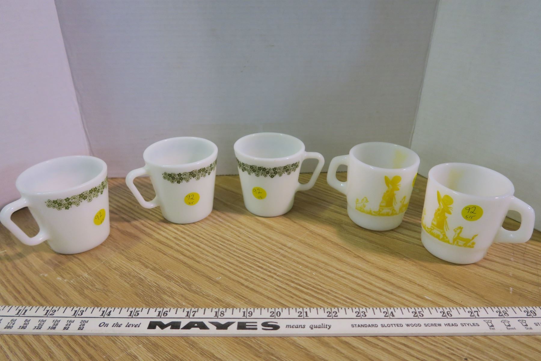5 Glass Mugs - 3 Pyrex, 2 Termocrisa