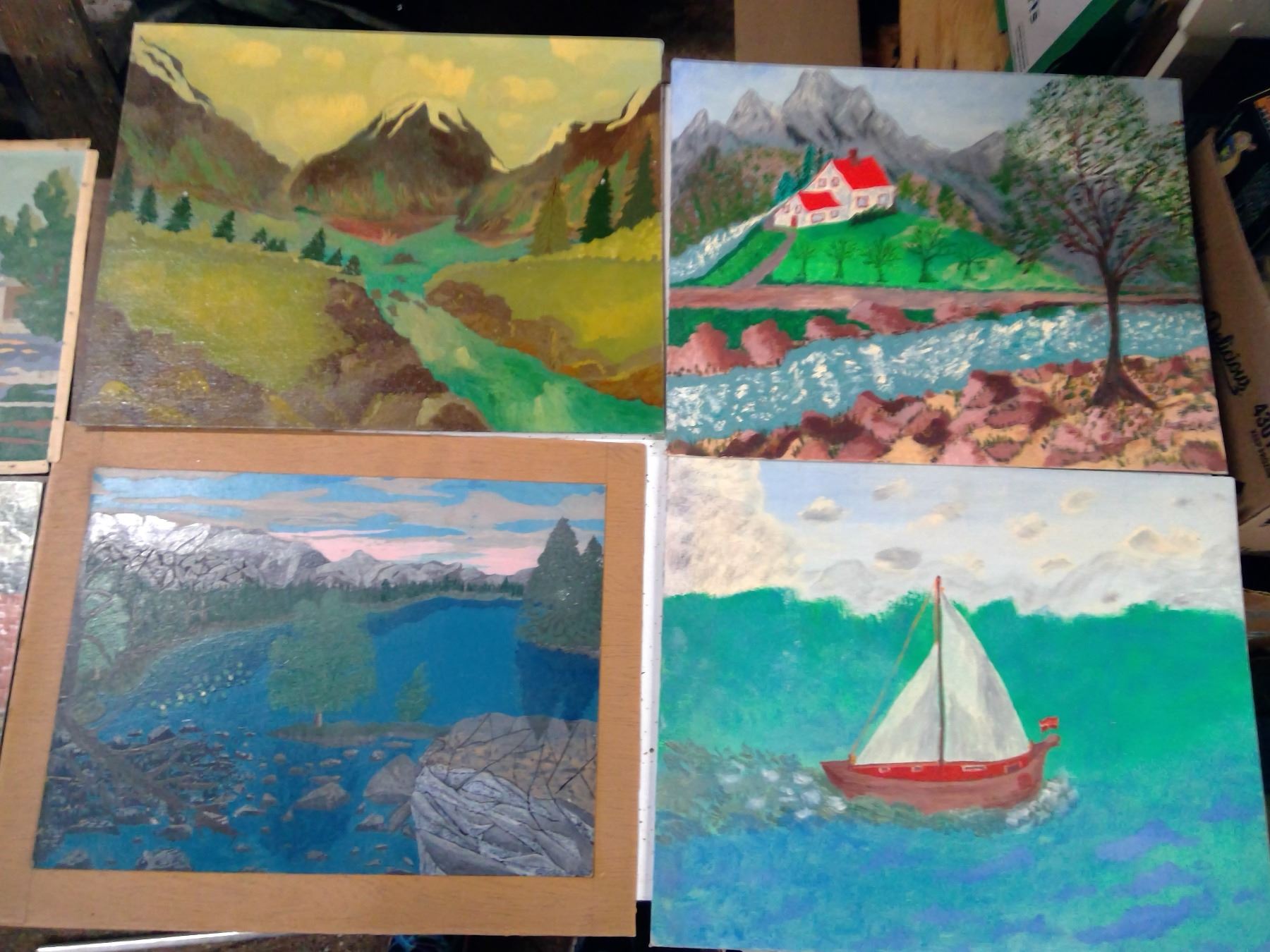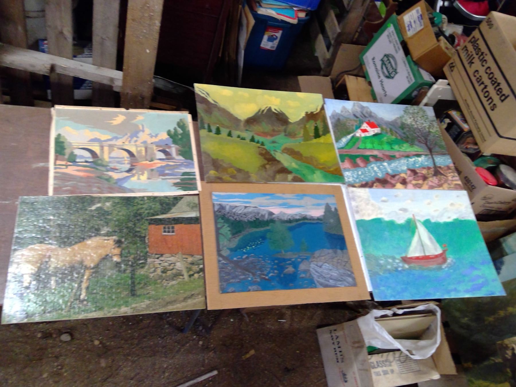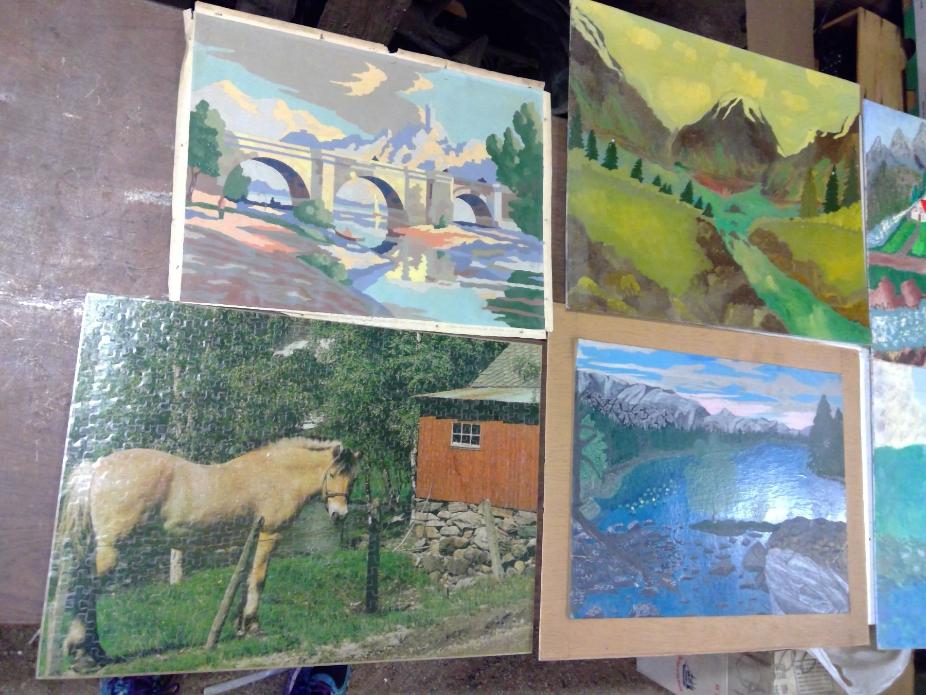 5 HAND PAINTED CANVASES AND ONE LAMINATED PUZZLE PICTURE