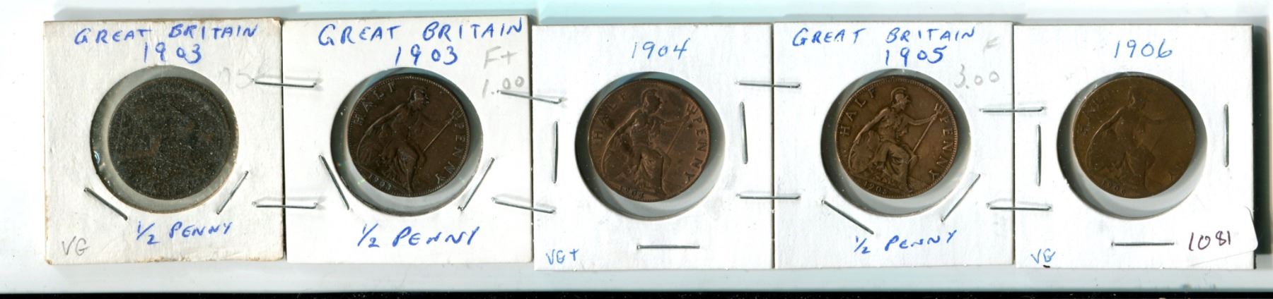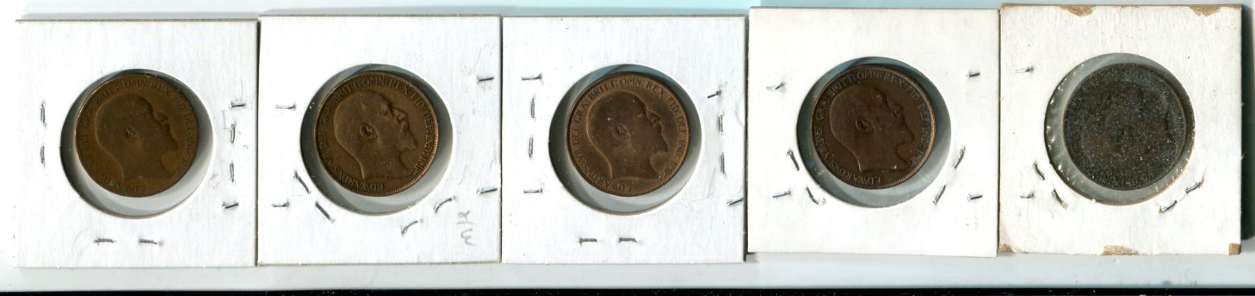 5 King Edwardvs VII Half Pennies - 2x 1903, 1904, 1905, 1906