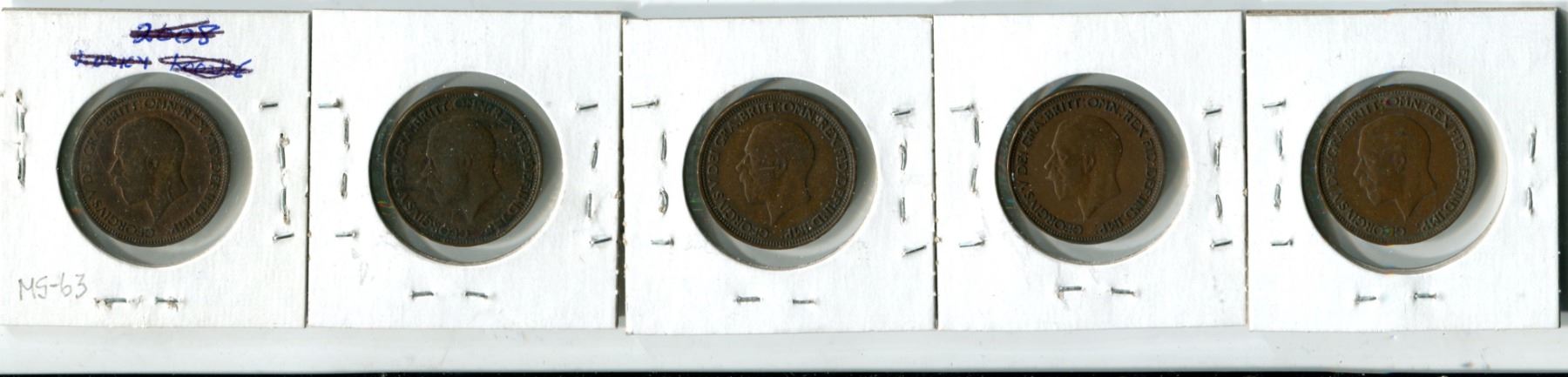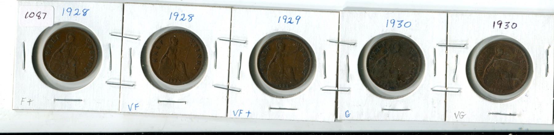 5 King Georgivs V Half Pennies - 2x 1928, 1929, 2x 1930