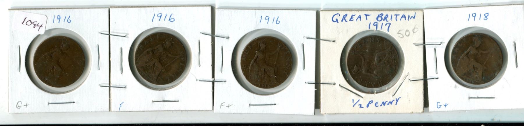 5 King Georgivs V Half Pennies - 3x 1916, 1917, 1918