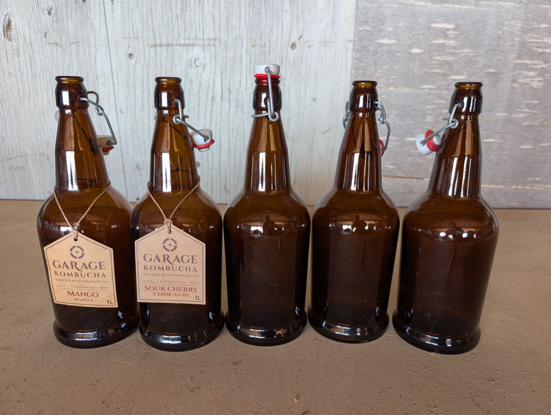 (5) Kombucha Bottles w/ Marked Bottoms