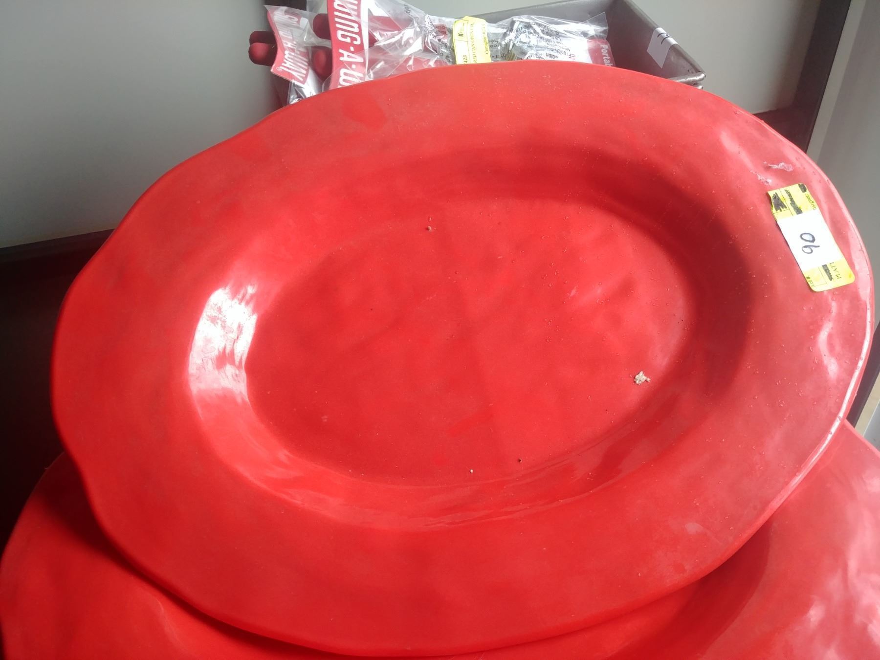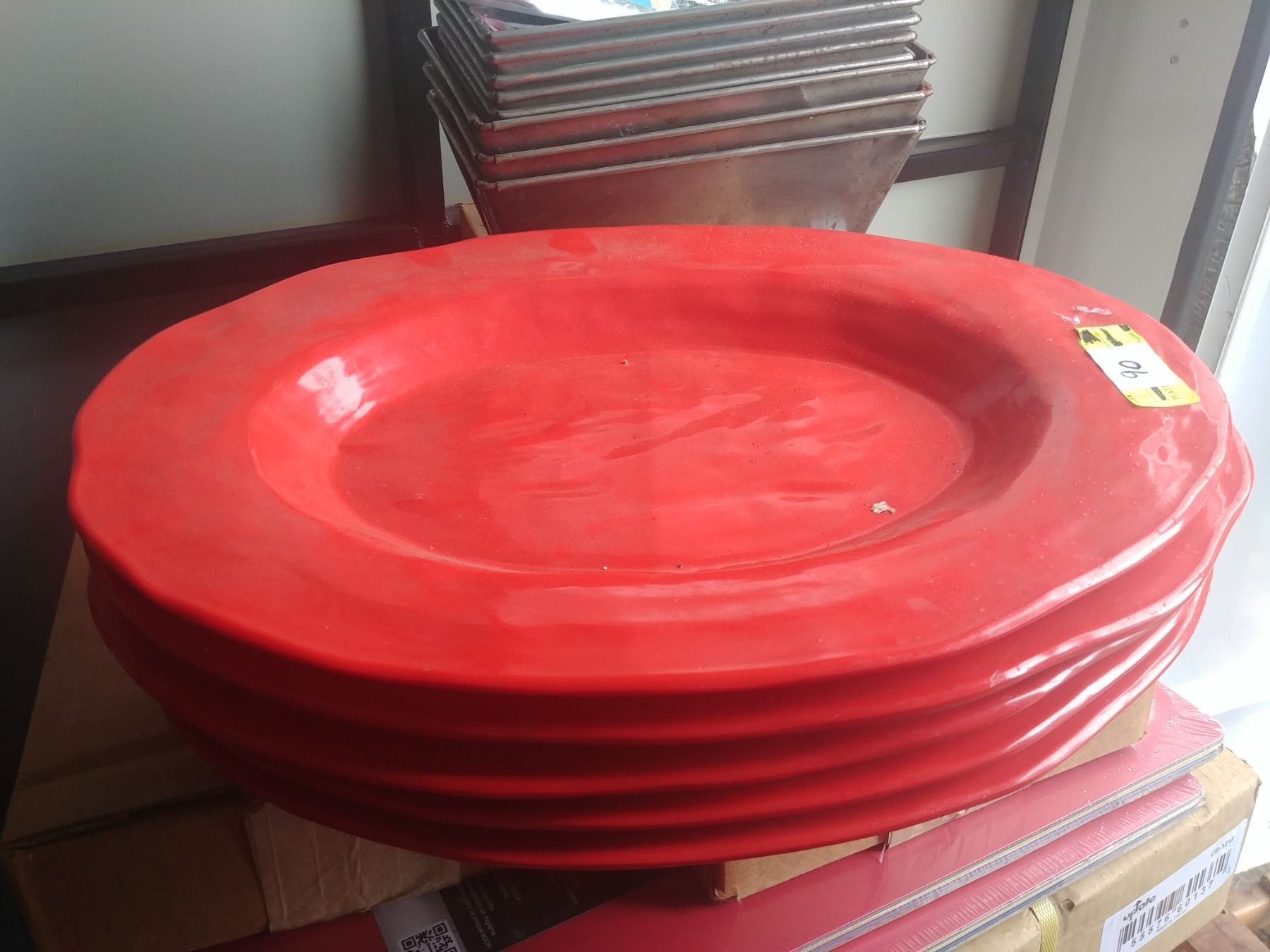 5 LARGE RED OVAL PLATTERS W/NON-SLIP BASES