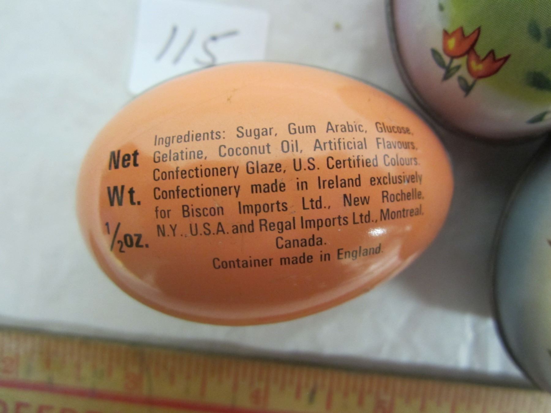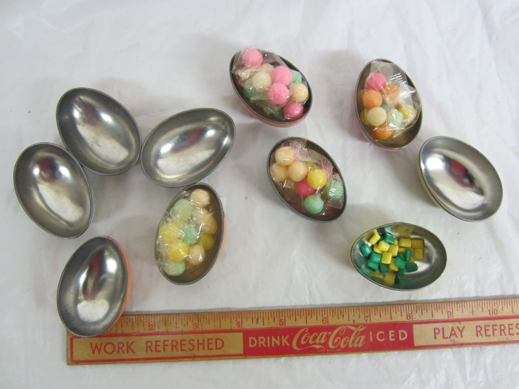 5 METAL 1950'S EASTER EGGS AND CONTENTS