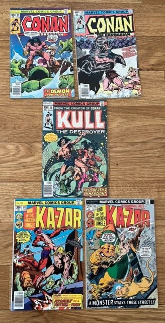 5 Marvel Comic Books - 20, 30, 35, 40 Cent - Conan, Kull, Ka-zar