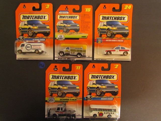 5 Matchbox Toys-Astra Kadett Police, Ikarus Coach,Scania T142,TV news Truck,Ford
