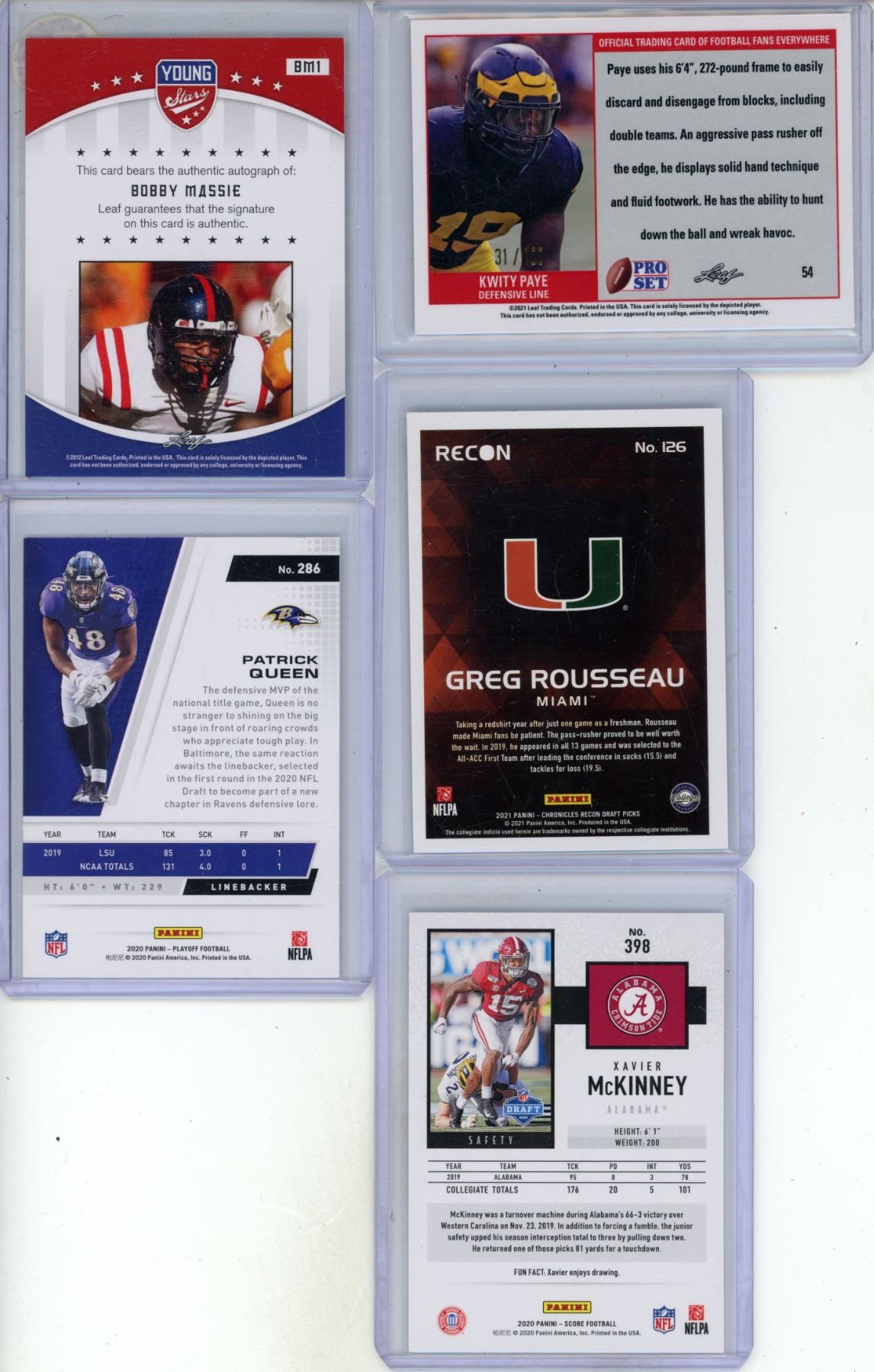 (5) NFL Rookie Cards.