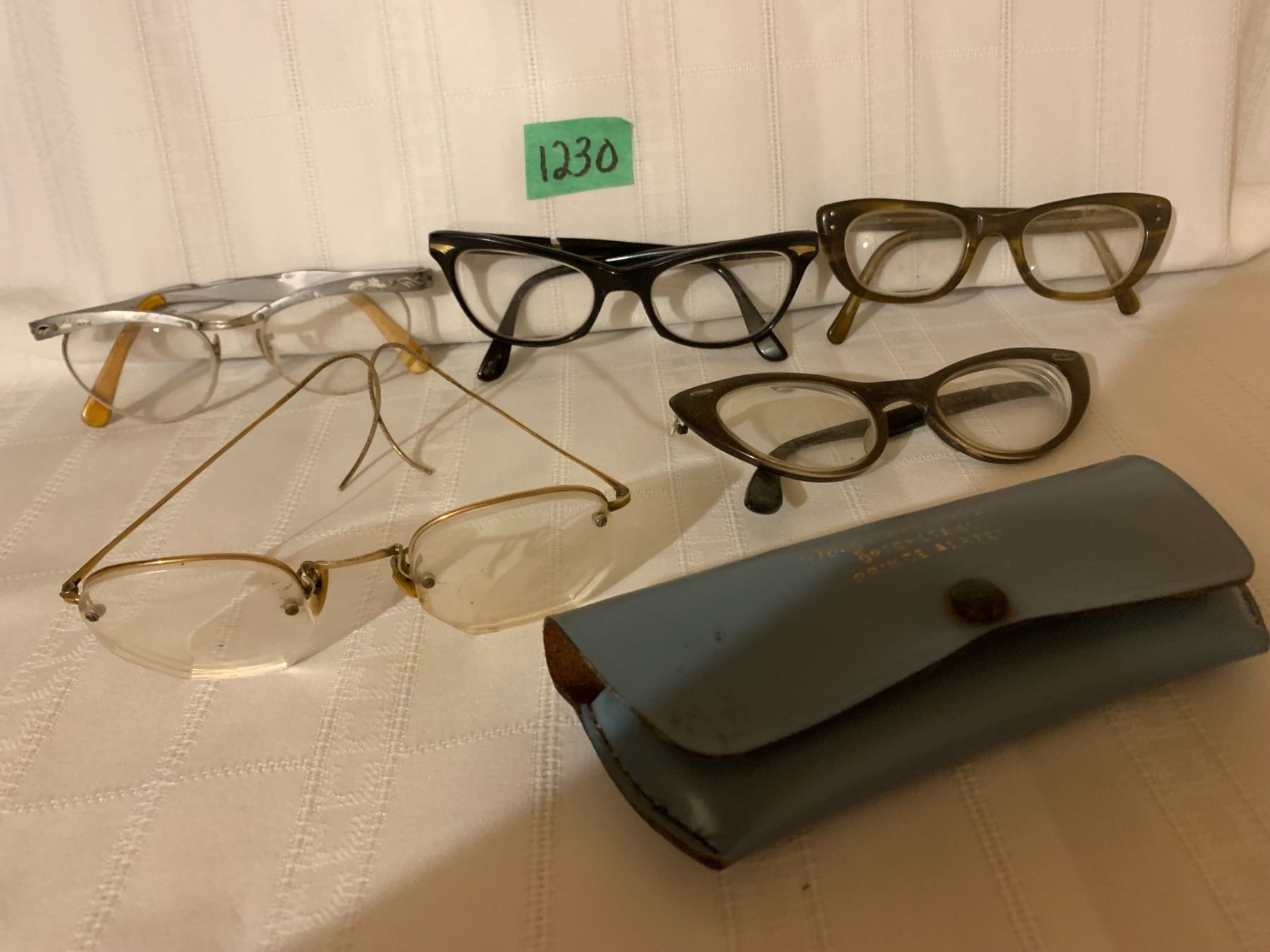 5 PAIRS VINTAGE EYEGLASSES WITH CASE