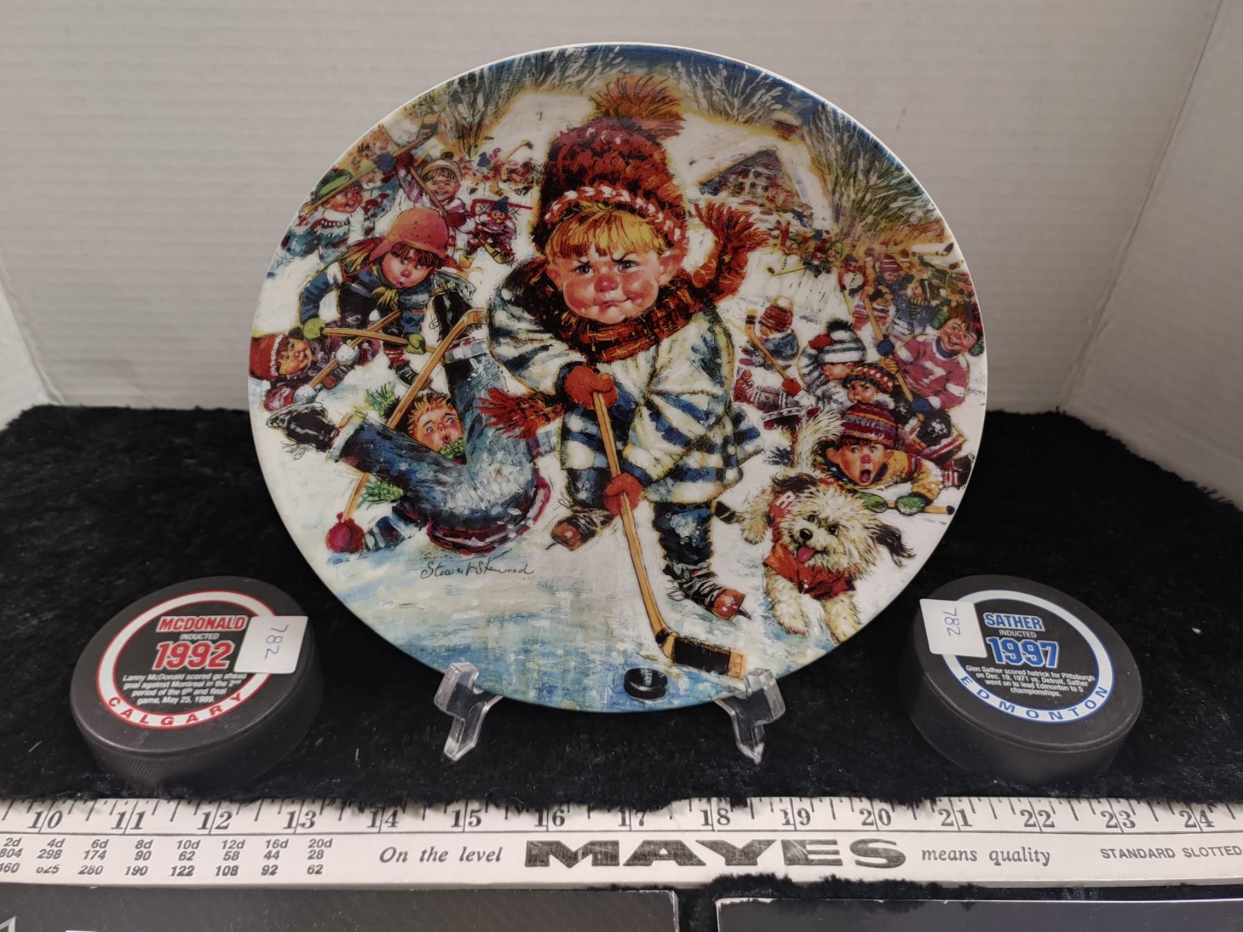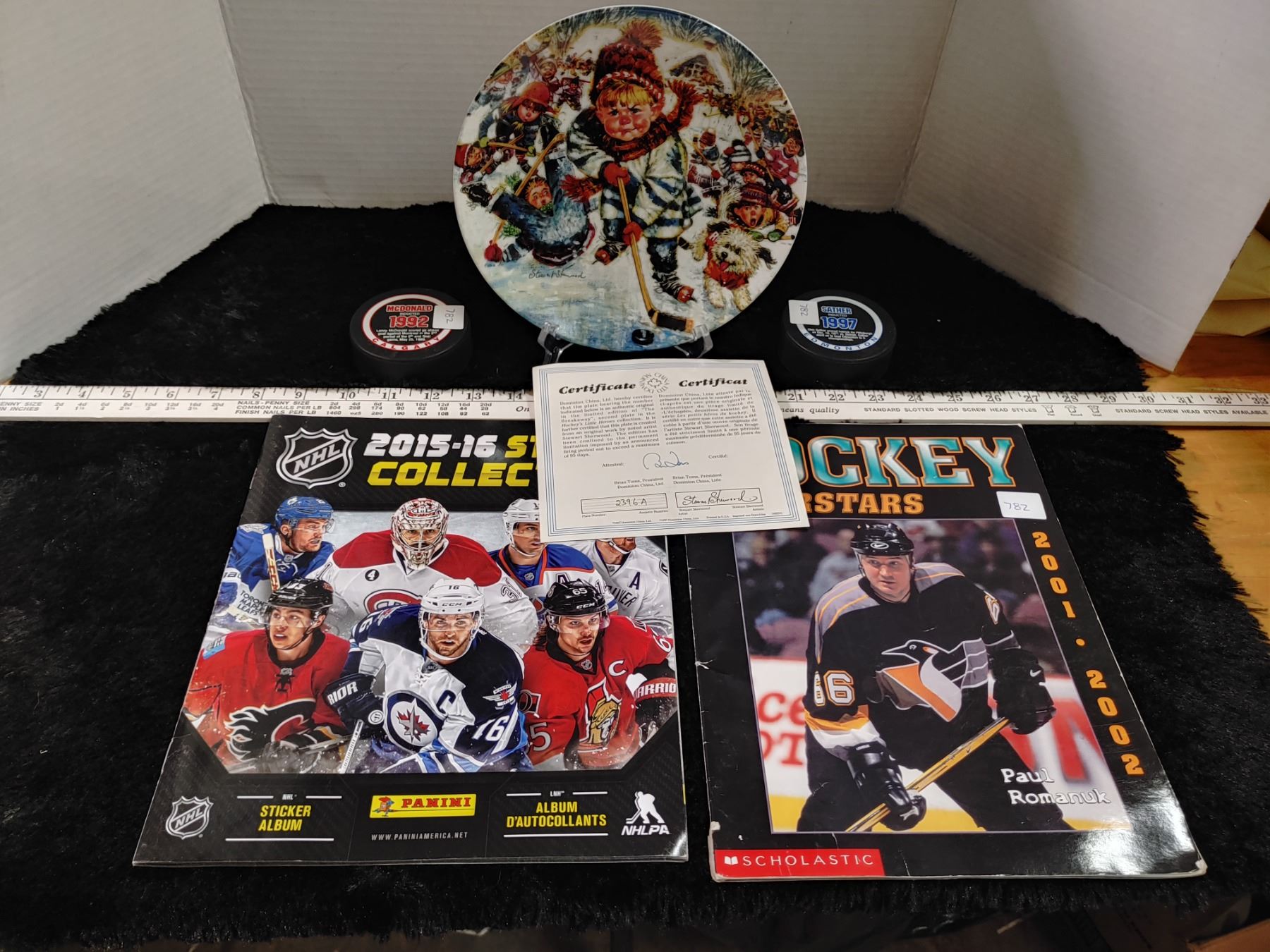 5 Piece Hockey Lot with Numbered Limited Edition Collector Plate with stand