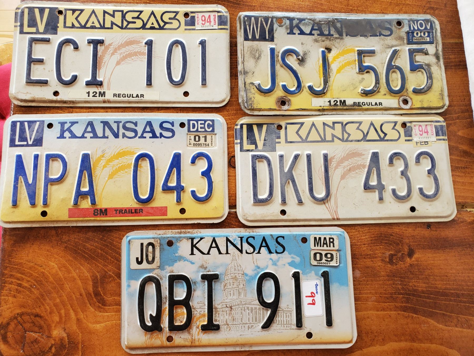5 SLIGHTLY DIFFERENT KANSAS LICENSE PLATES