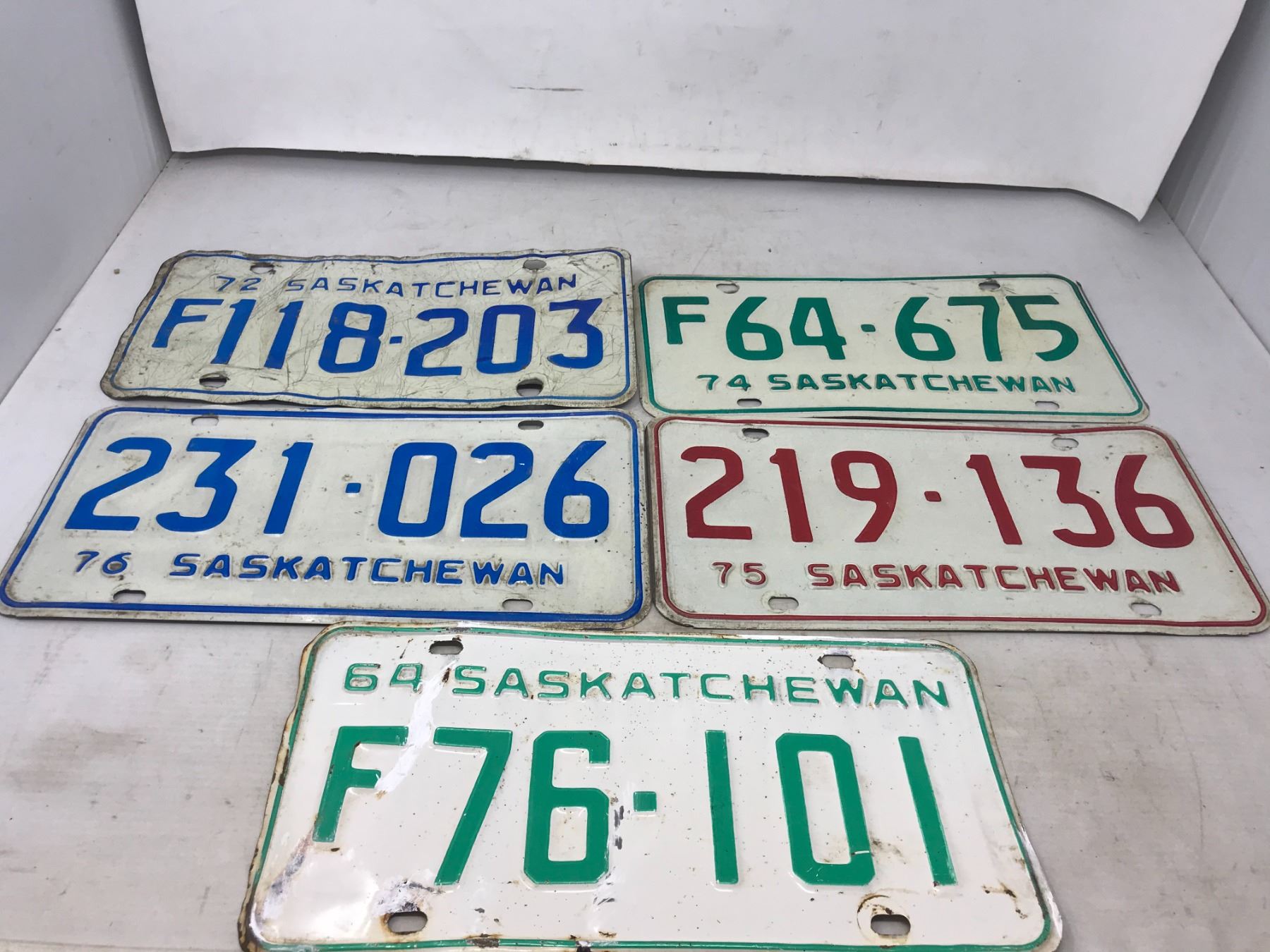 5 Sask License Plates 1964, 1972,1974,1975,1976