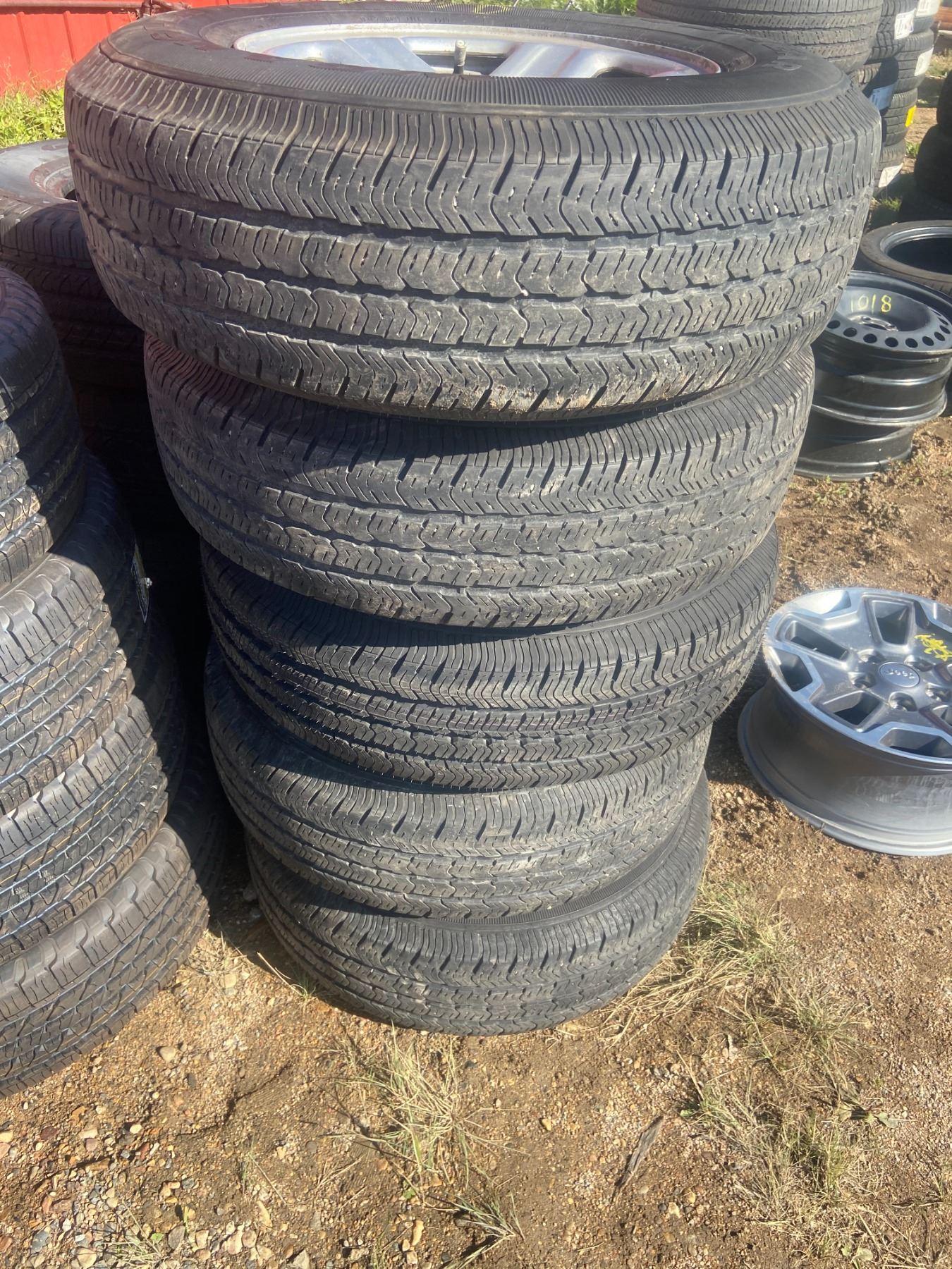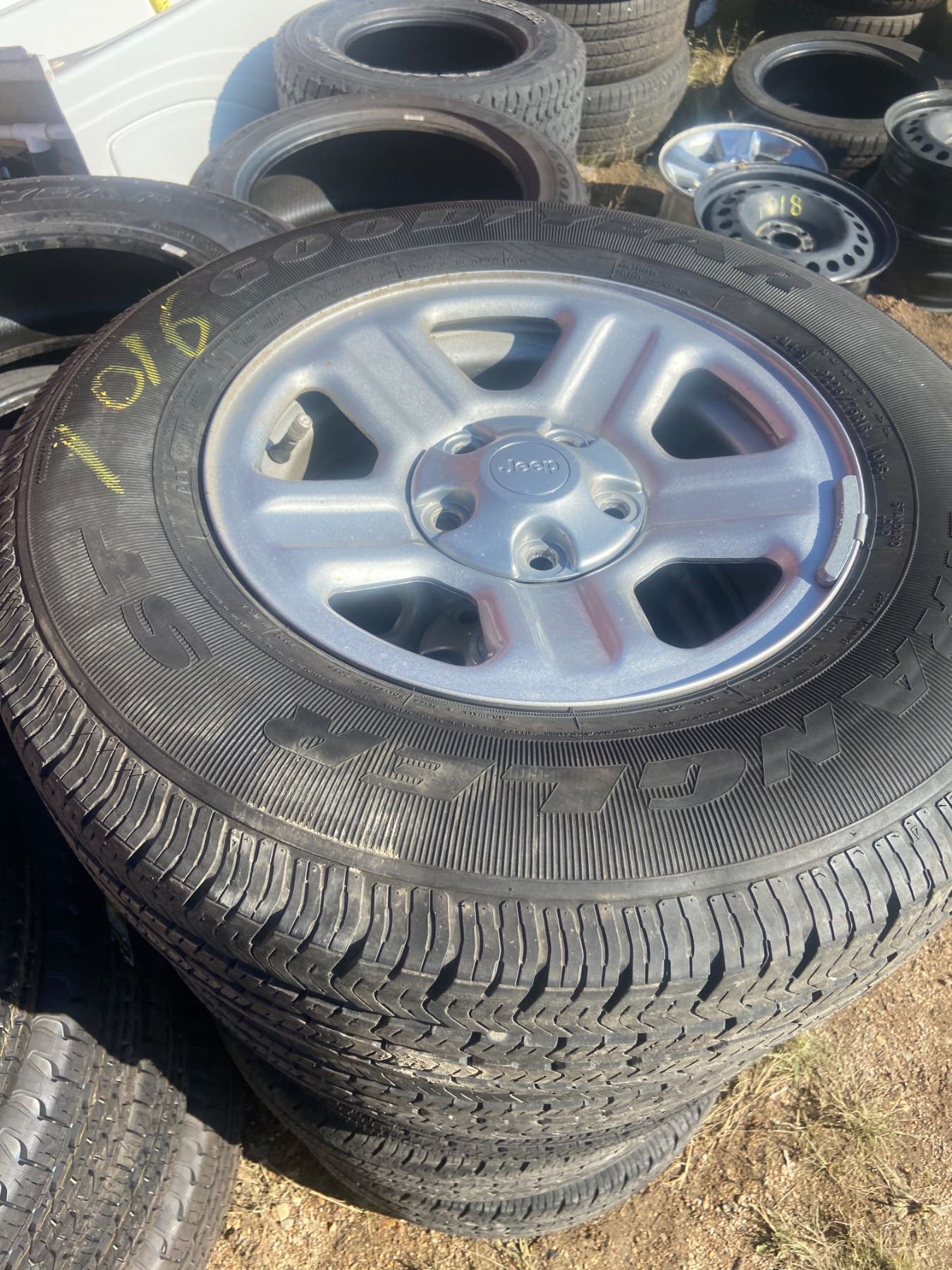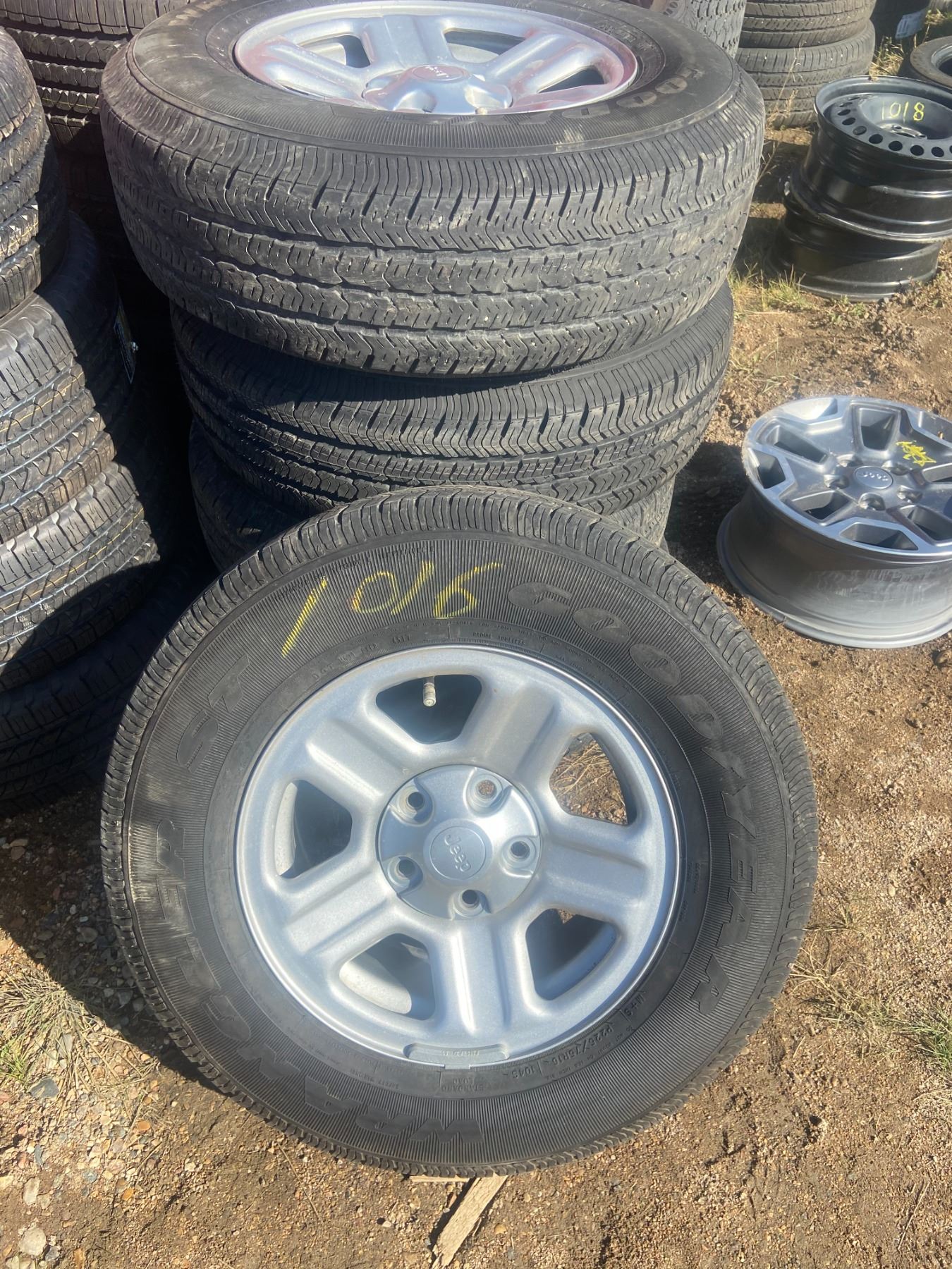 5 TIRES + RIMS JEEP 225-75-16 GOODYEAR WRANGLER NEW
