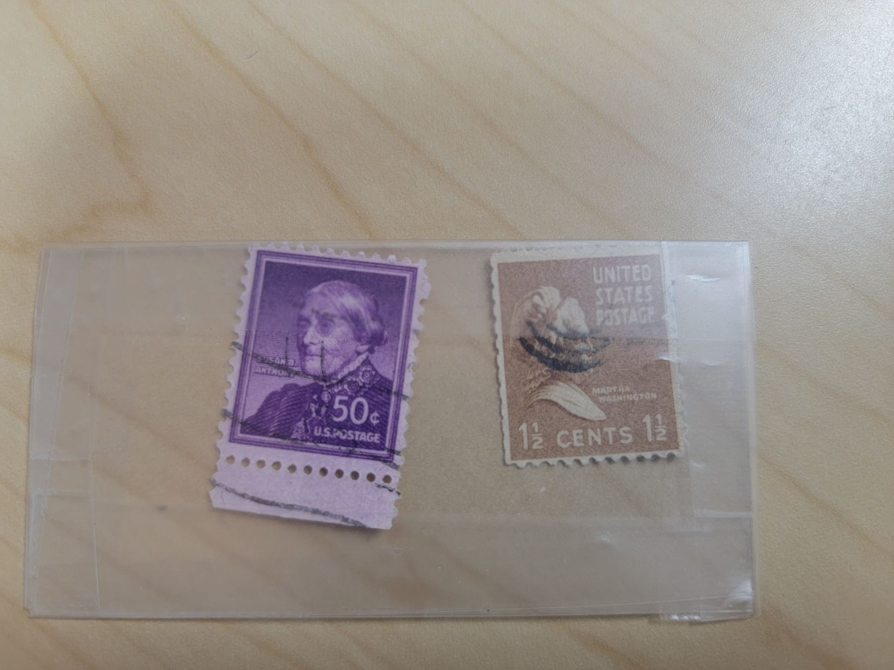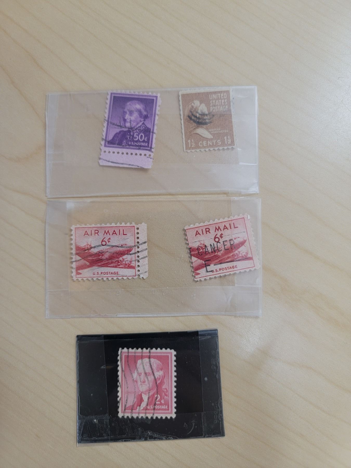 5 USA stamps - 2 air mail, Jefferson, Anthony, Washington