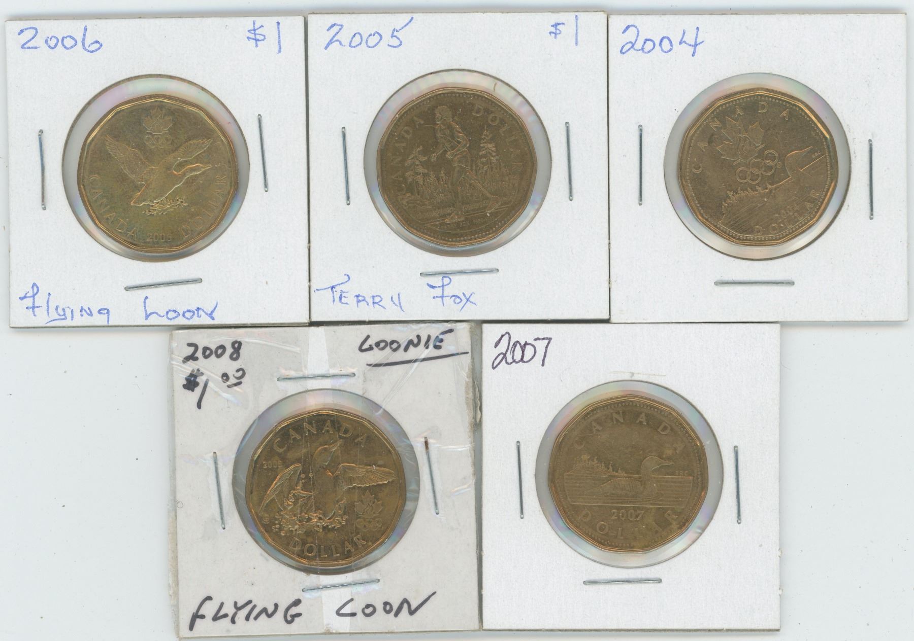5 X 2004 - 2008 Canadian 1 Dollar Coins