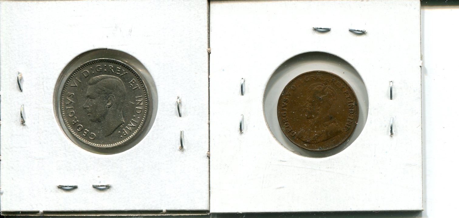 5 cents Canadian 1940 + 1921 1cent Gan VF penny nickel coin