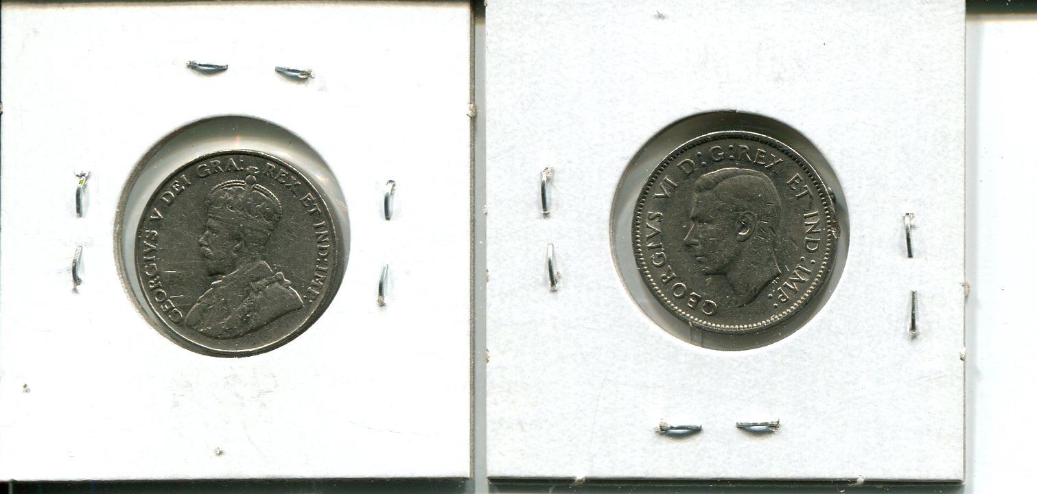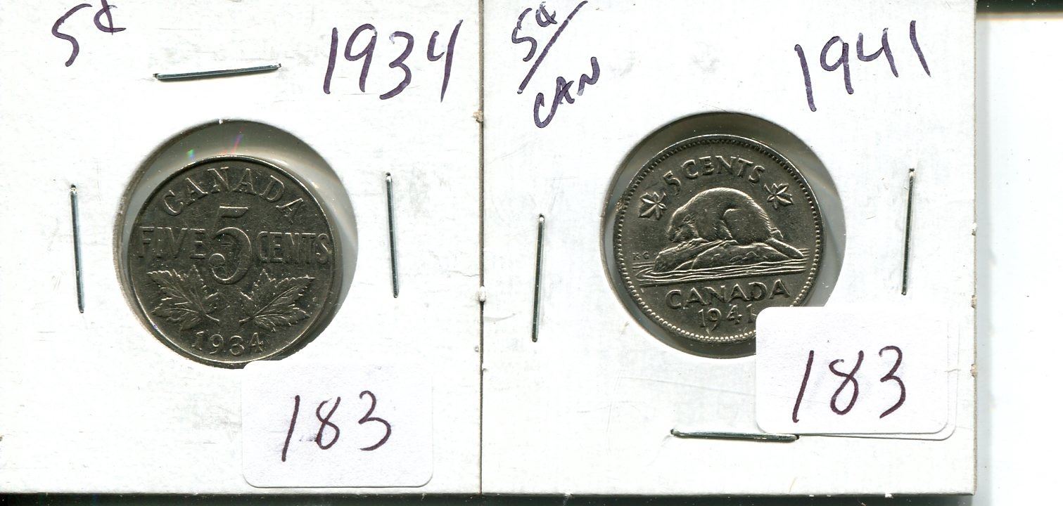 5 cents Canadian 1941 + 1934 5 cents nickel coin