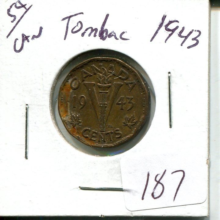 5 cents Canadian 1943 Tombac nickel coin