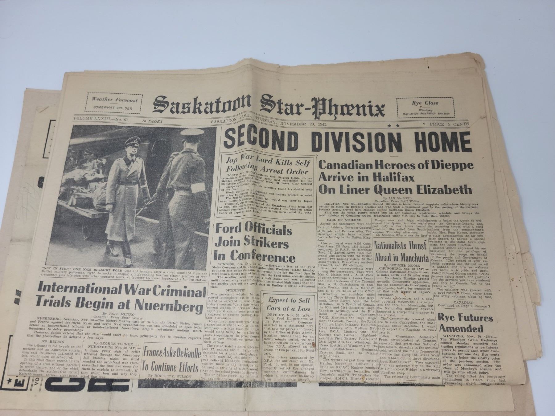 “Canadian Commando Forces Blast Nazis!” News Flash, Extra, War News, Vol. 2, No. 4, Columbia Pictures. “Kaput.” For Canadian Forces in Action, The Maple Leaf Extra, Special Victory Edition, Vol. 3, No. 39, May 9, 1945. “Second Division Home.” Star-Phoenix, Nov. 20, 1945. “Nazis Arraigned Before Court.” Daily Star, Nov. 20, 1945. “15,000” Welcome Home.” The Leader Post, Nov. 24, 1945