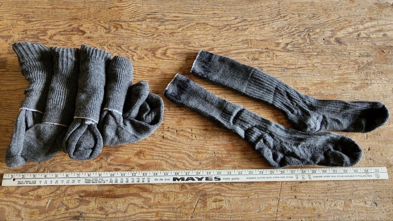 5 pairs of gray Mens Winter wooly socks, white trim