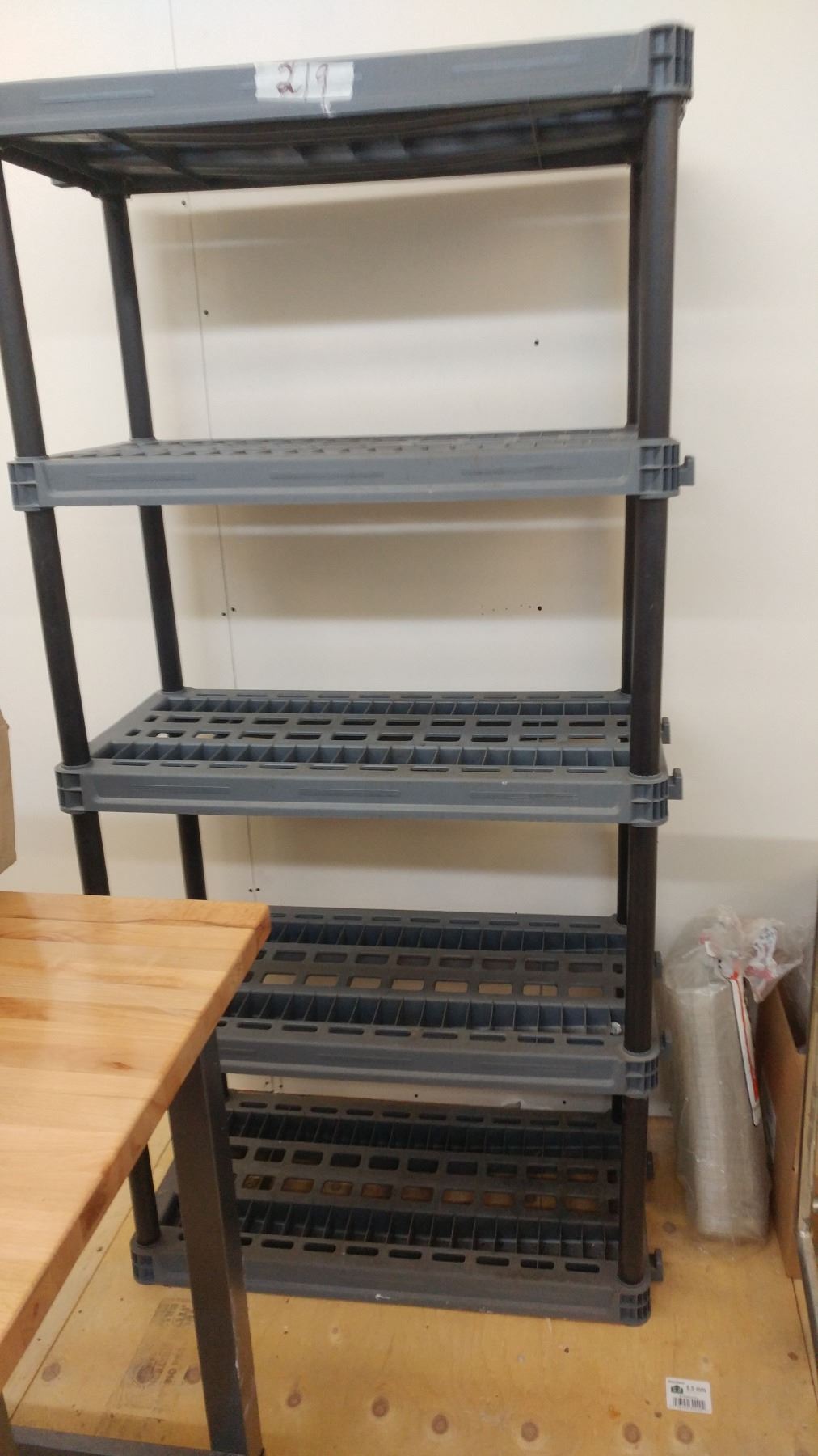 5 shelf plastic shelving 75"T x 36"W