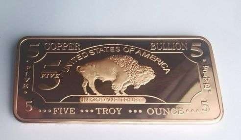 5 troy ounce copper bullion bar USA