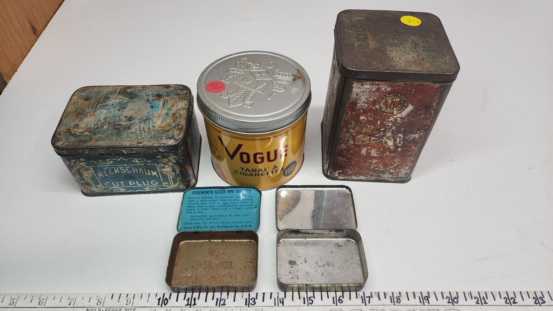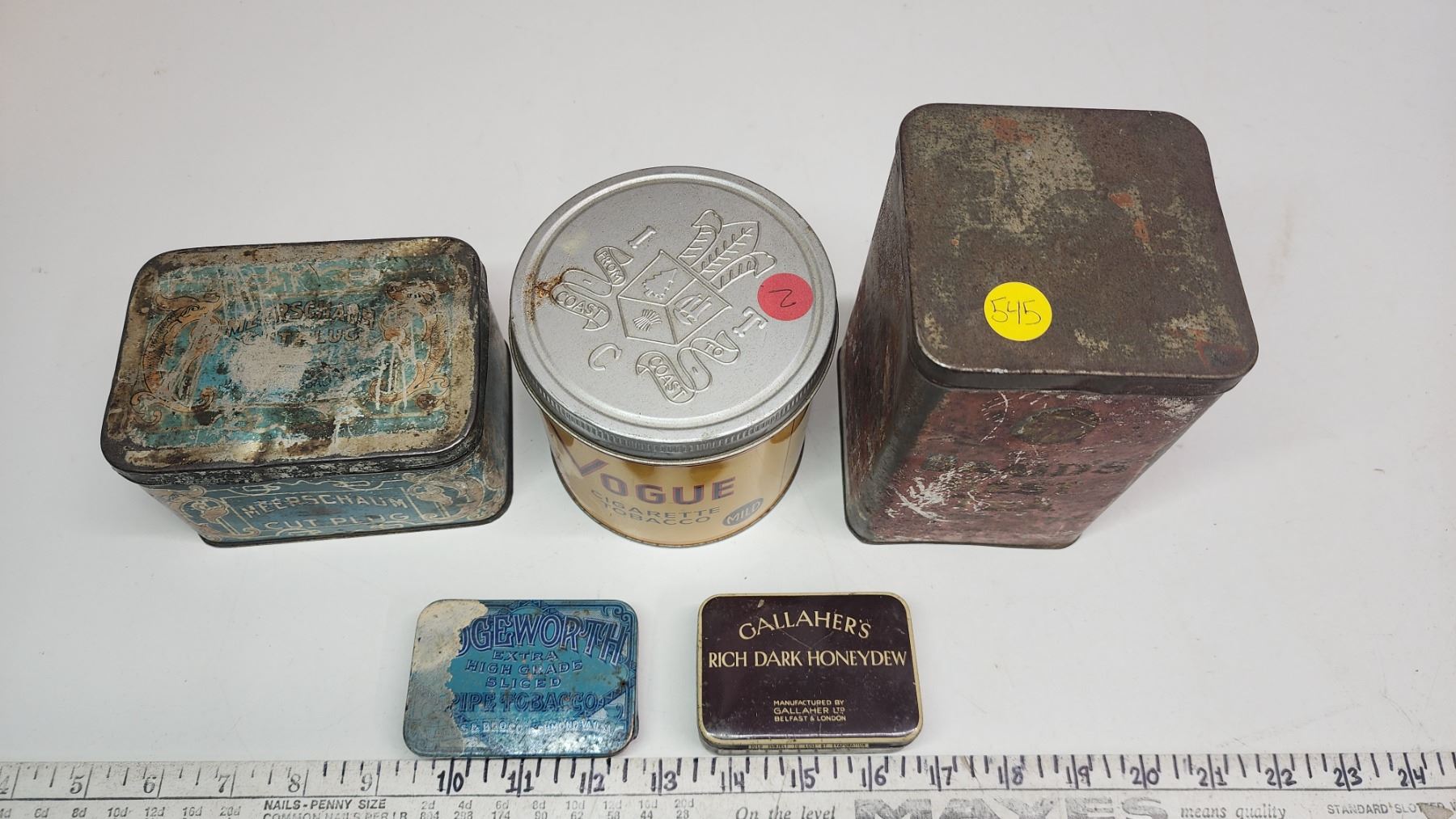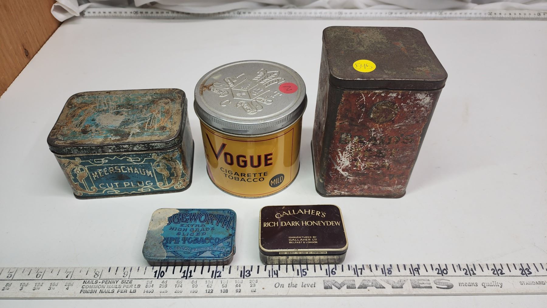 5 vintage tins - Vogue, Gallaher's, Meerschaum, etc.