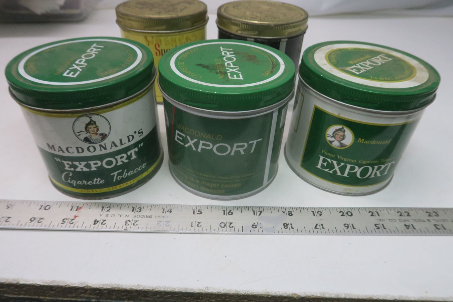 5 vintage tobacco tins - Macdonld's, Peter Jackson, Sportsman