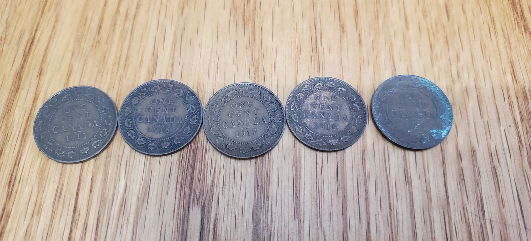 5 x Canada Large Cent 1915, 1916, 1917, 1918, 1919