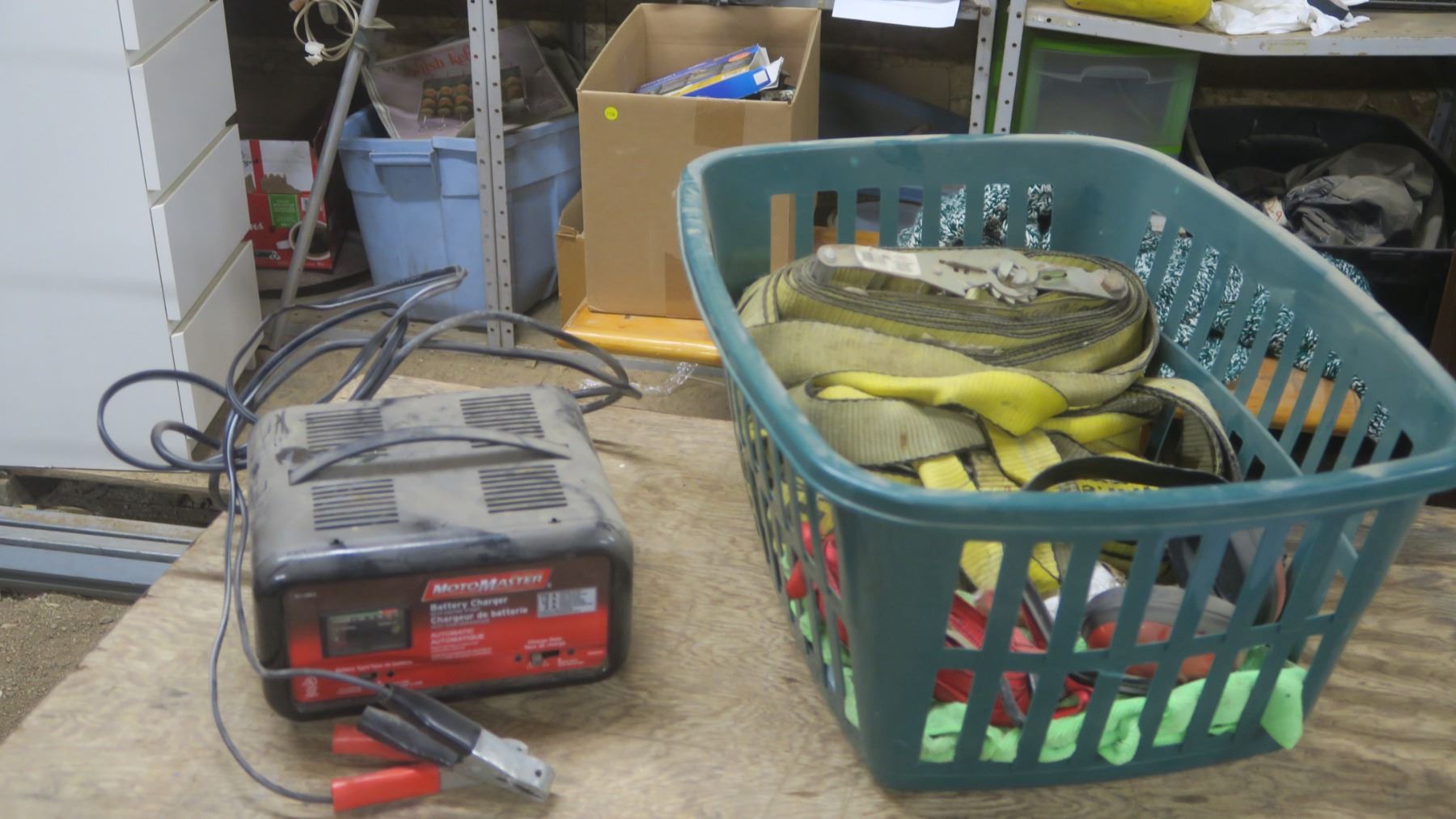 5 x Thick Ratchet Straps - Various Smaller ones / Motomaster Battery Charger w Engine Start / Ear PPE /