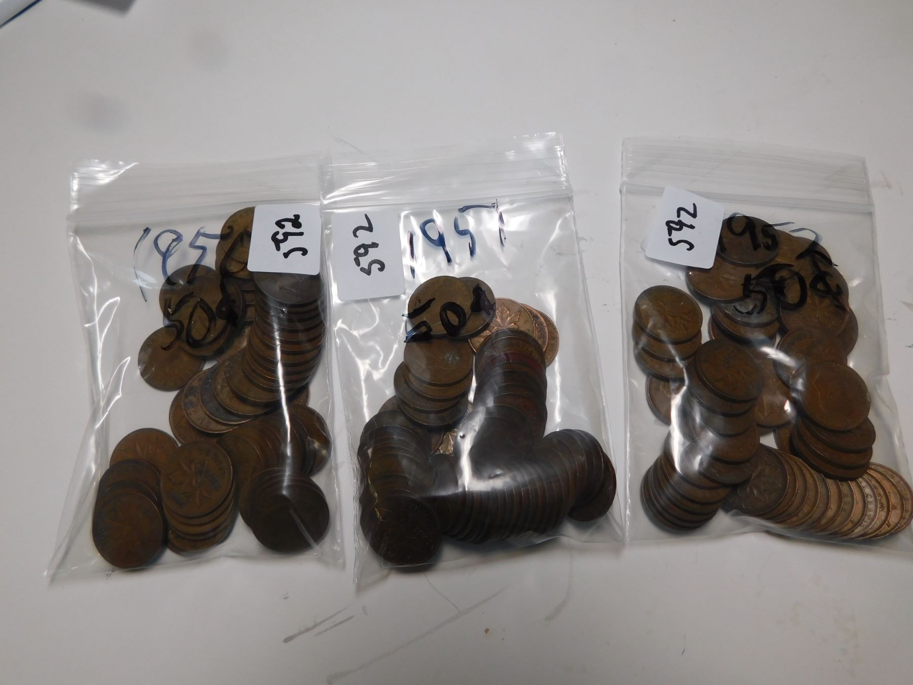 50-EACH 1950, 1951, AND 1952 ONE CENT COINS