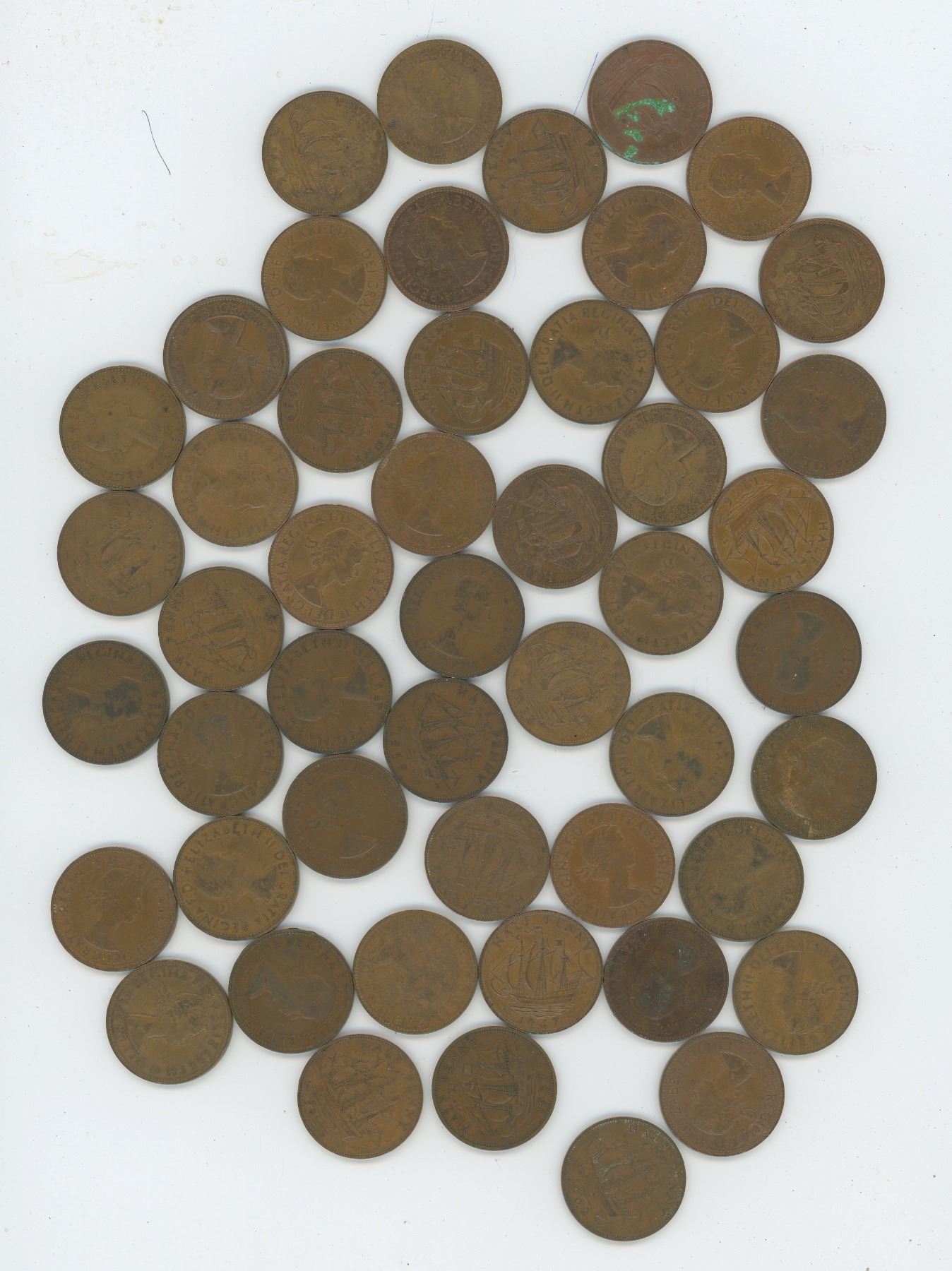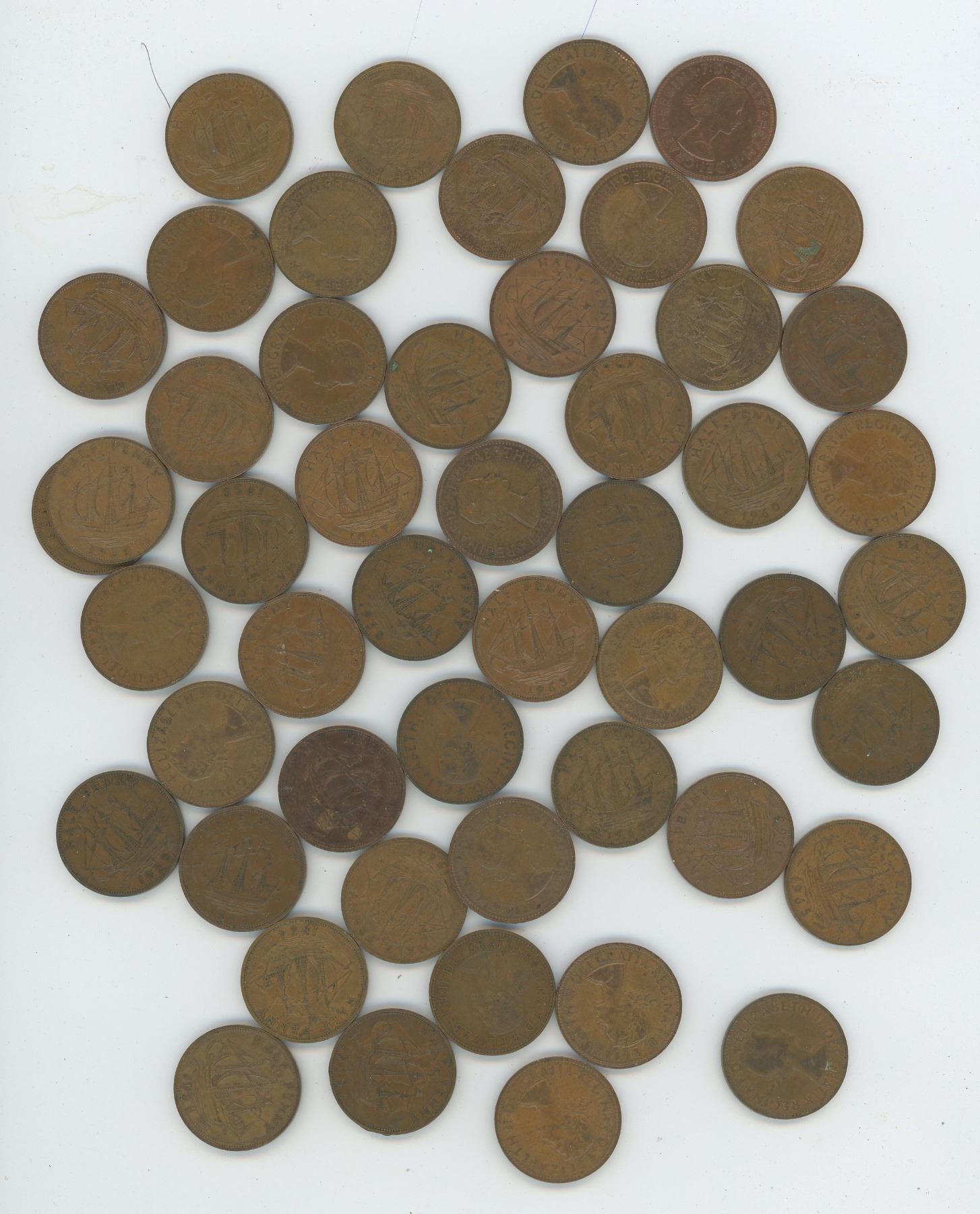 50 Queen Elizabeth 11 Half Pennies - 1950s & 1960s