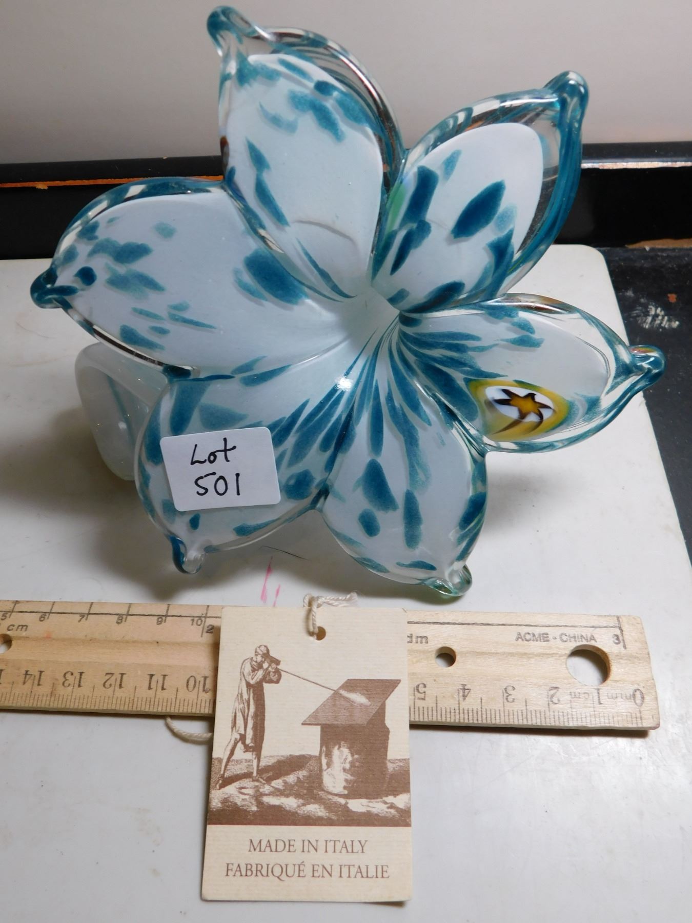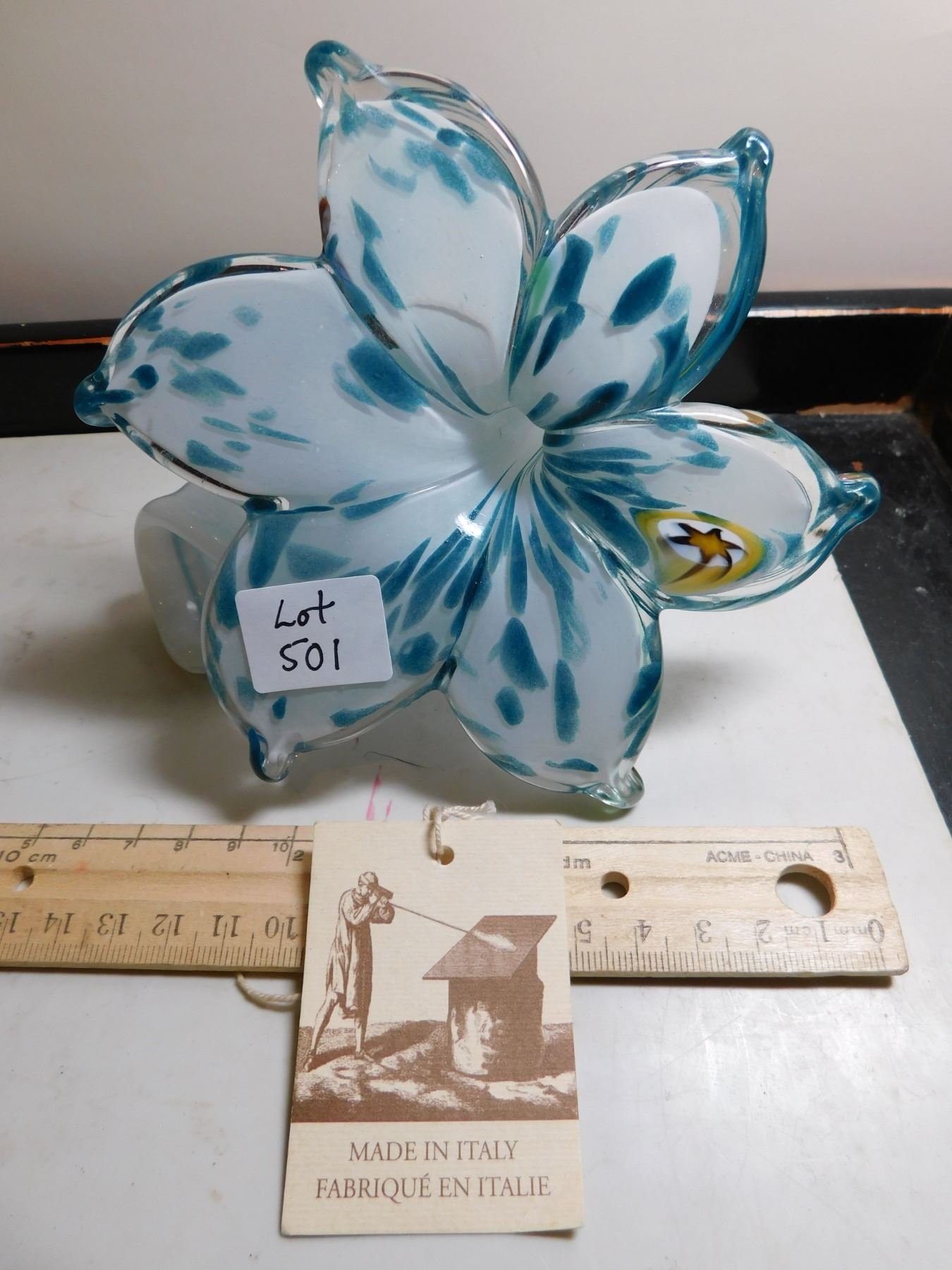501. made in Italy art glass flower with tags