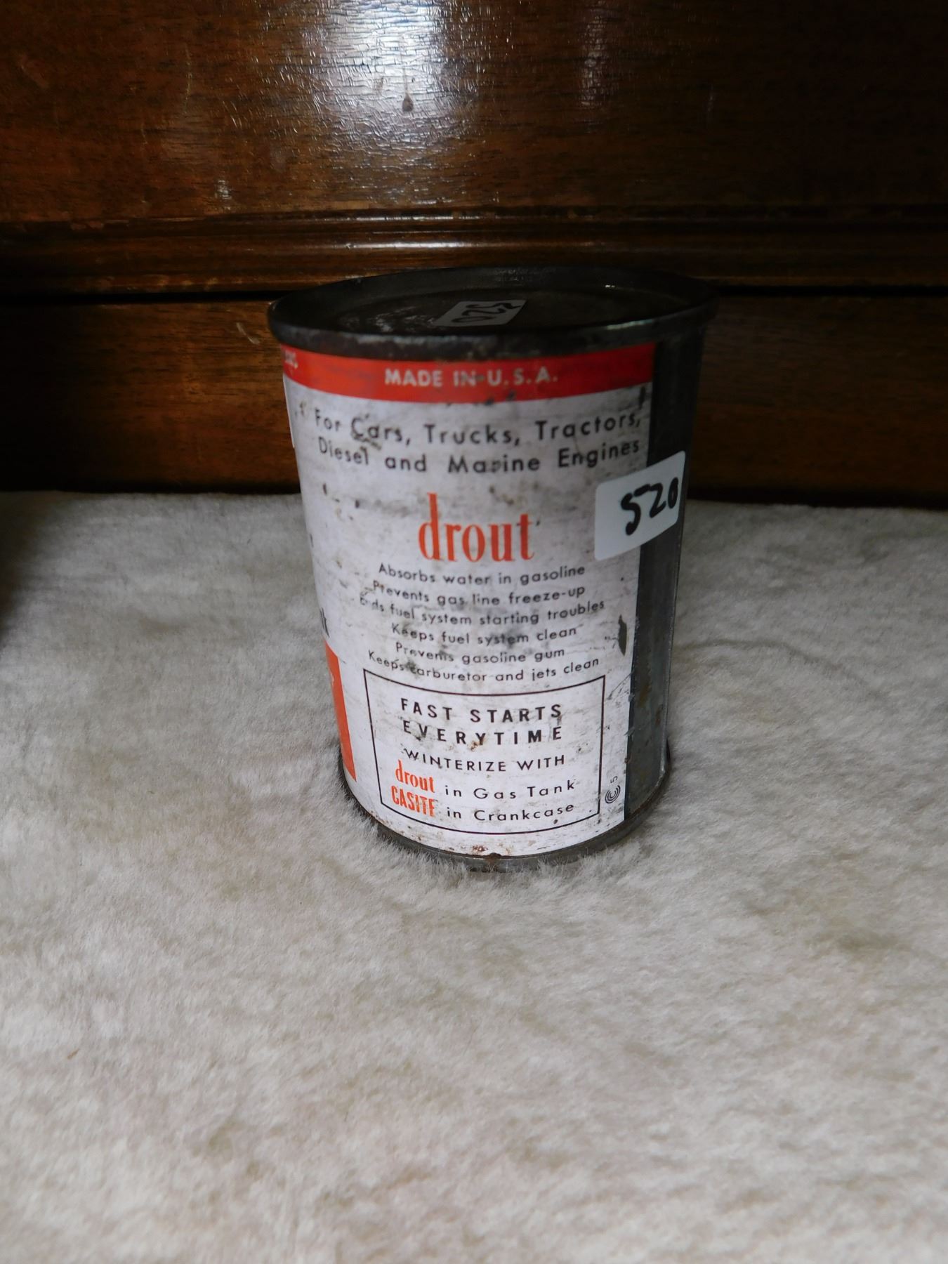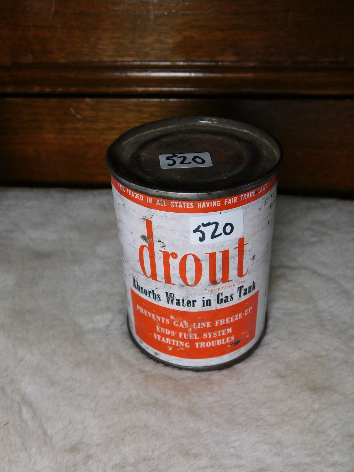 520. Drout unopened 4oz gas line antifreeze tin 1950’s