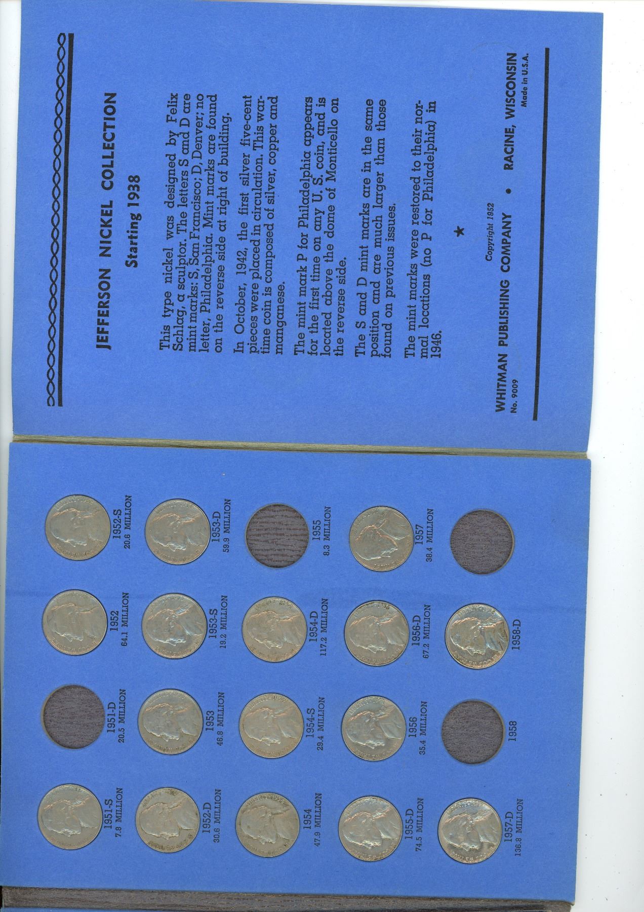 53 US 5 Cent Jefferson 1938-1958 INCL. in Correct Whitman Blue Coin Holder