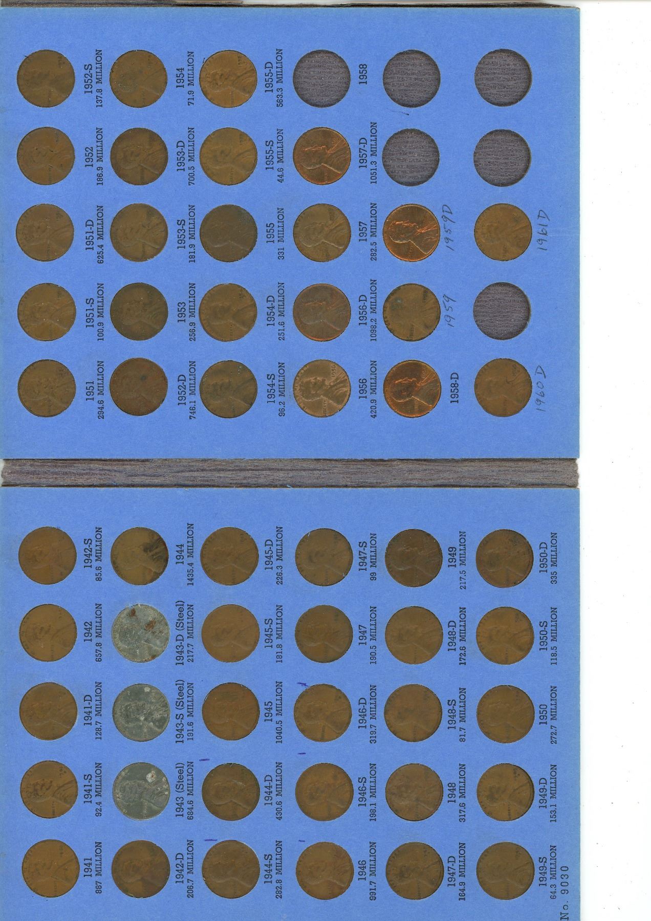 54 US 1 cent Coin 1941-1961 INCL Lincoln Head in Whitman Blue Coin Holder