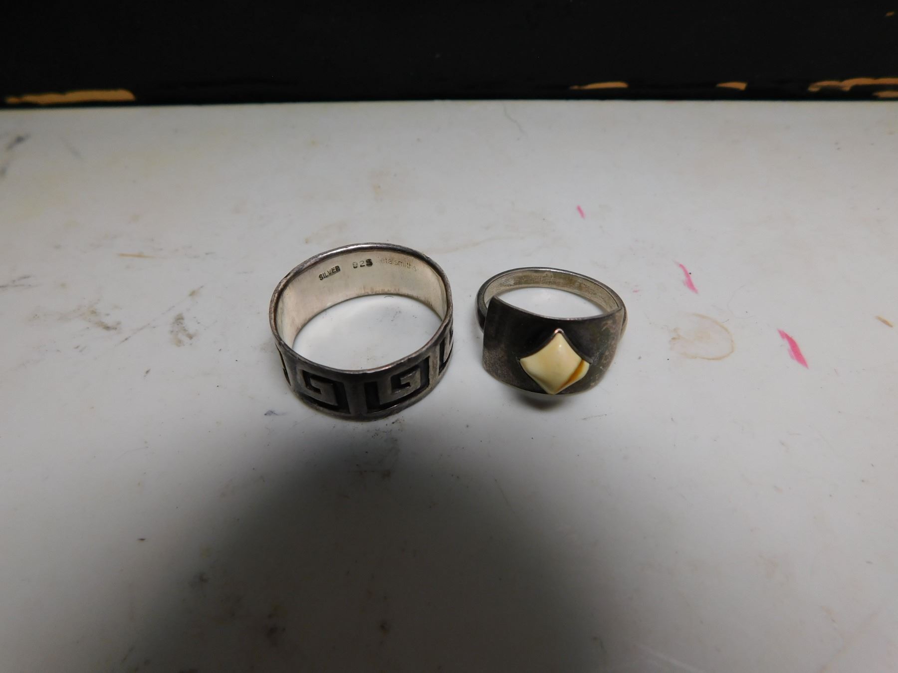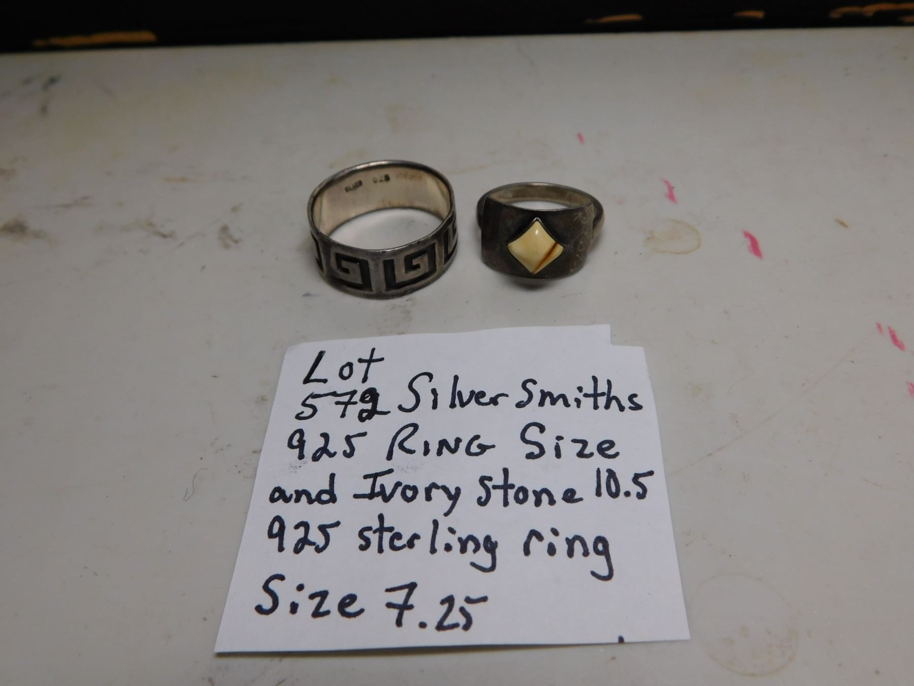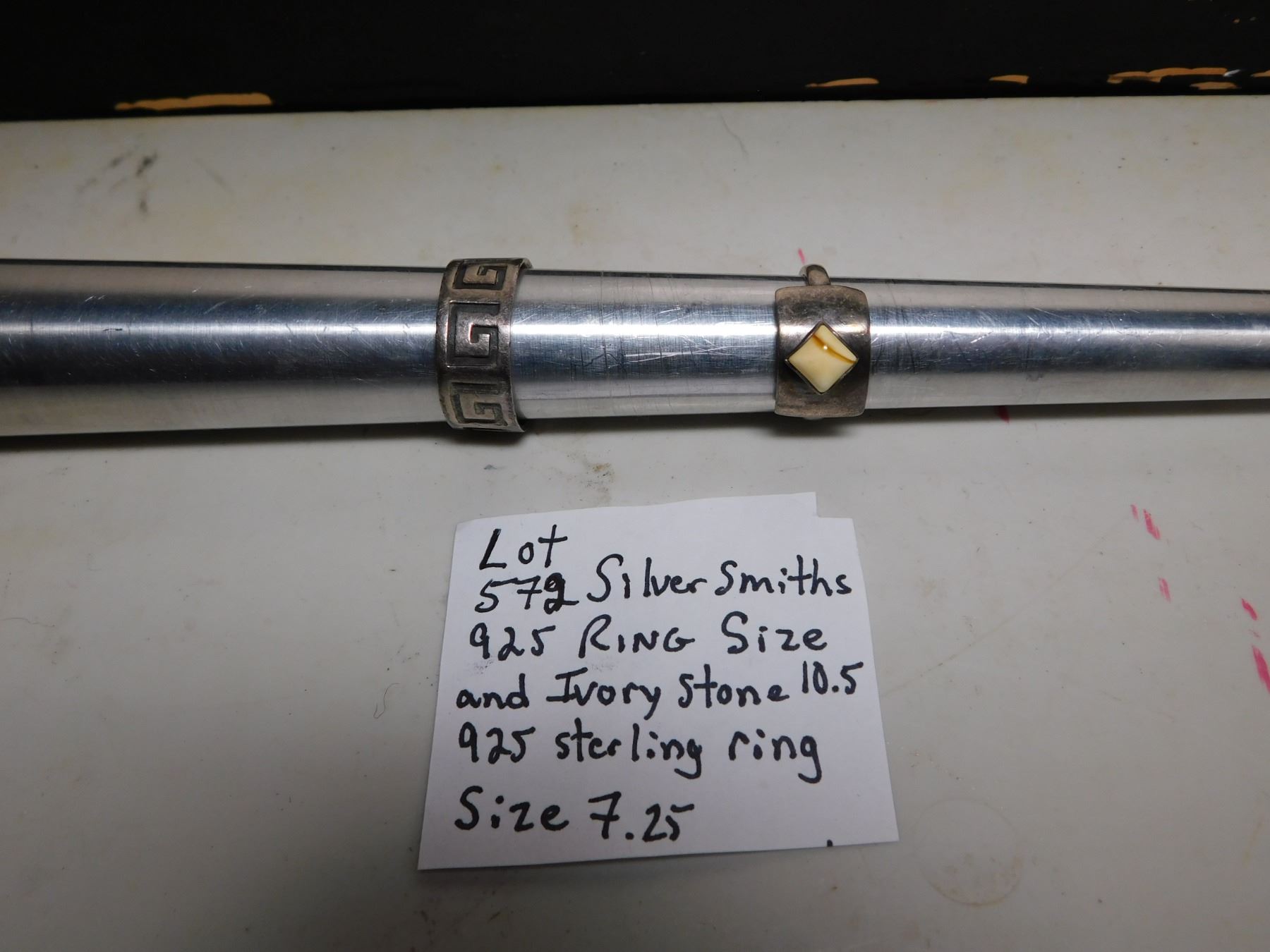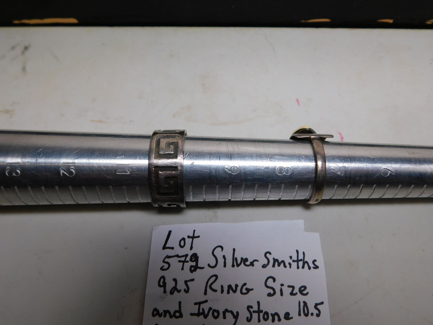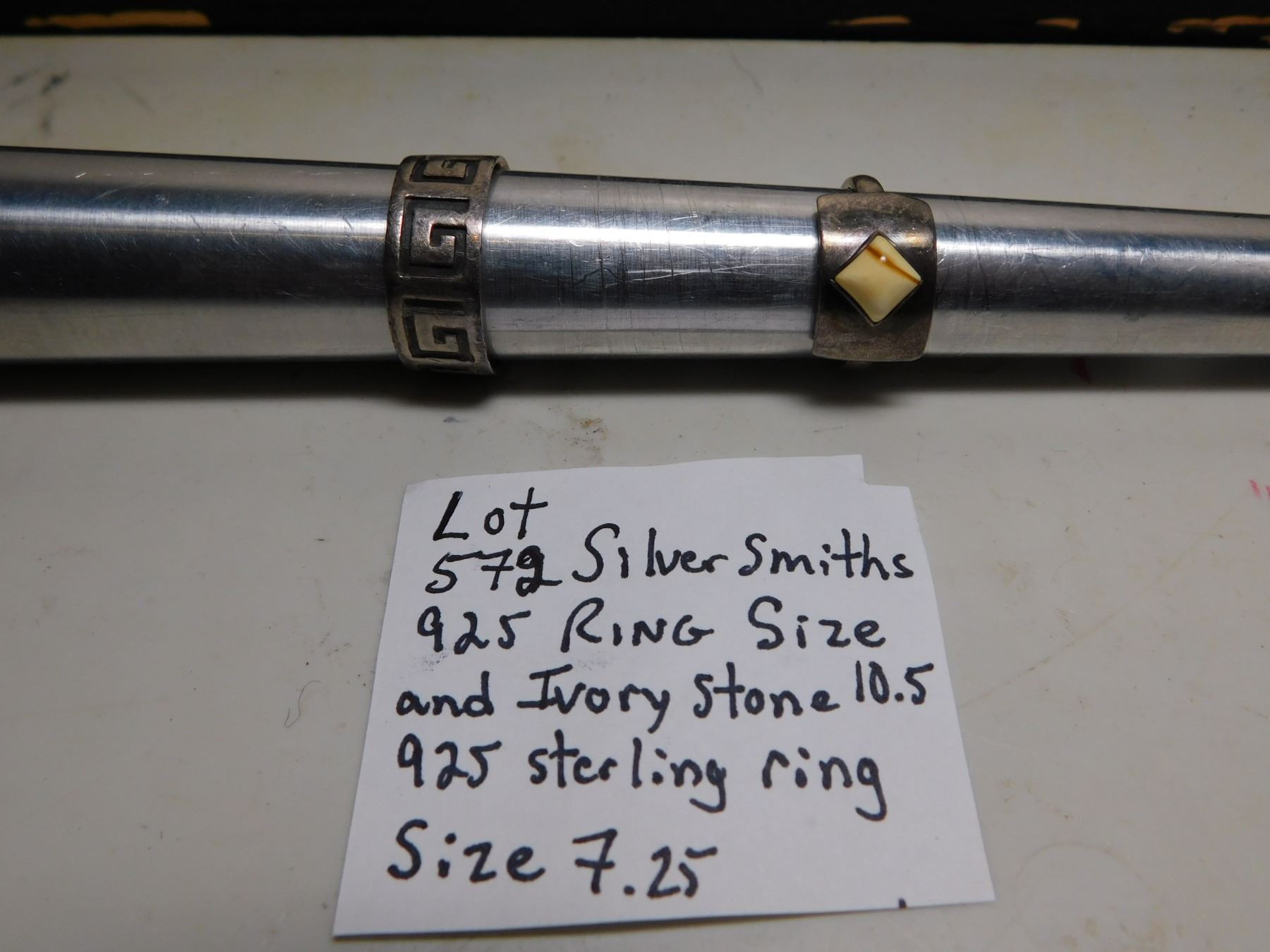 572. Silversmiths sterling ring sz 10.5 and ivorystone stg ring sz 7.25