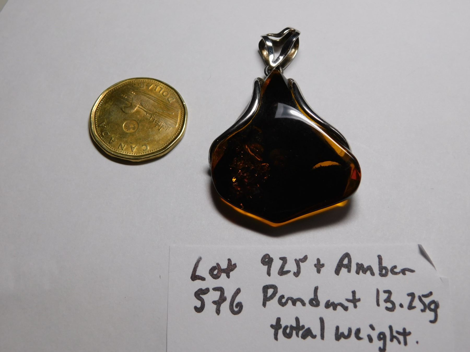 576. Sterling and amber pendant 13.75 gms
