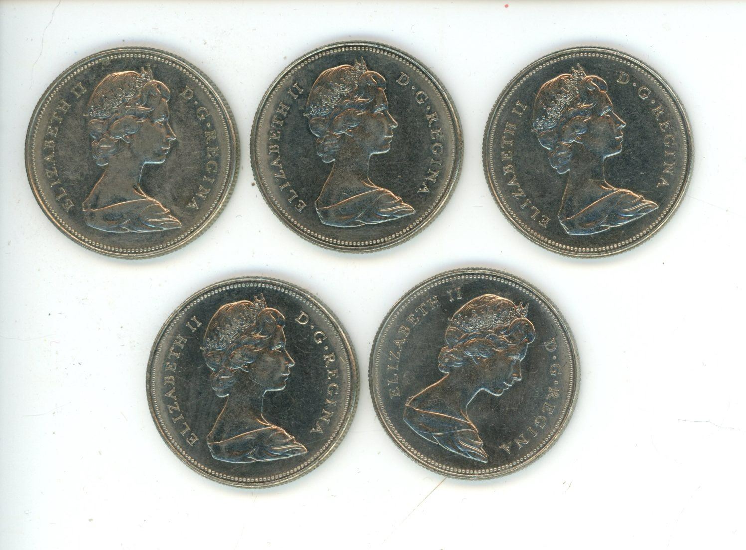 5X 1971 Canadian 50 Cent Coins